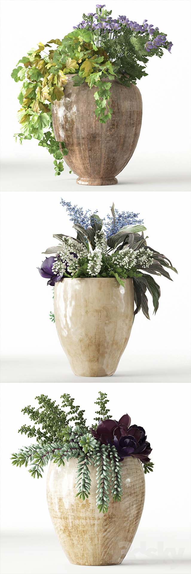 常春藤和多肉植物花卉盆栽组合素材之家精选3D模型
