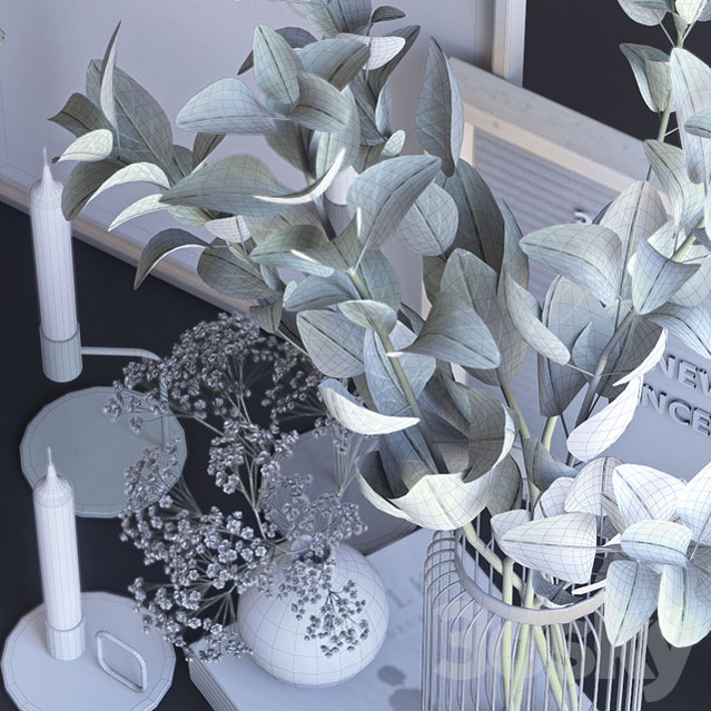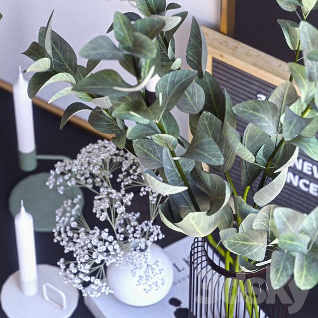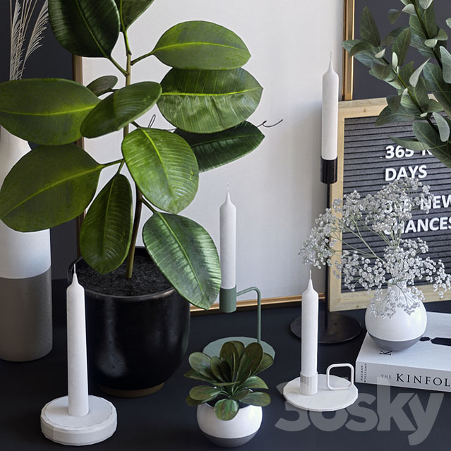 蜡烛和榕树桉树植物盆栽装饰品素材之家精选3D模型