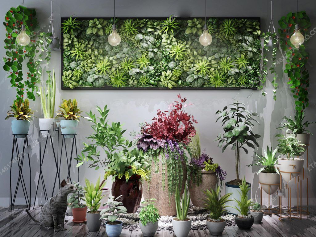 现代植物花架挂画吊篮盆栽3d模型
