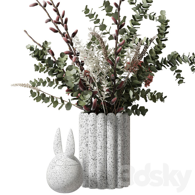 关键字:花束,桉树,花卉,花瓶,雕像,罐子,野兔,装饰,绿色,树枝,生态风格
