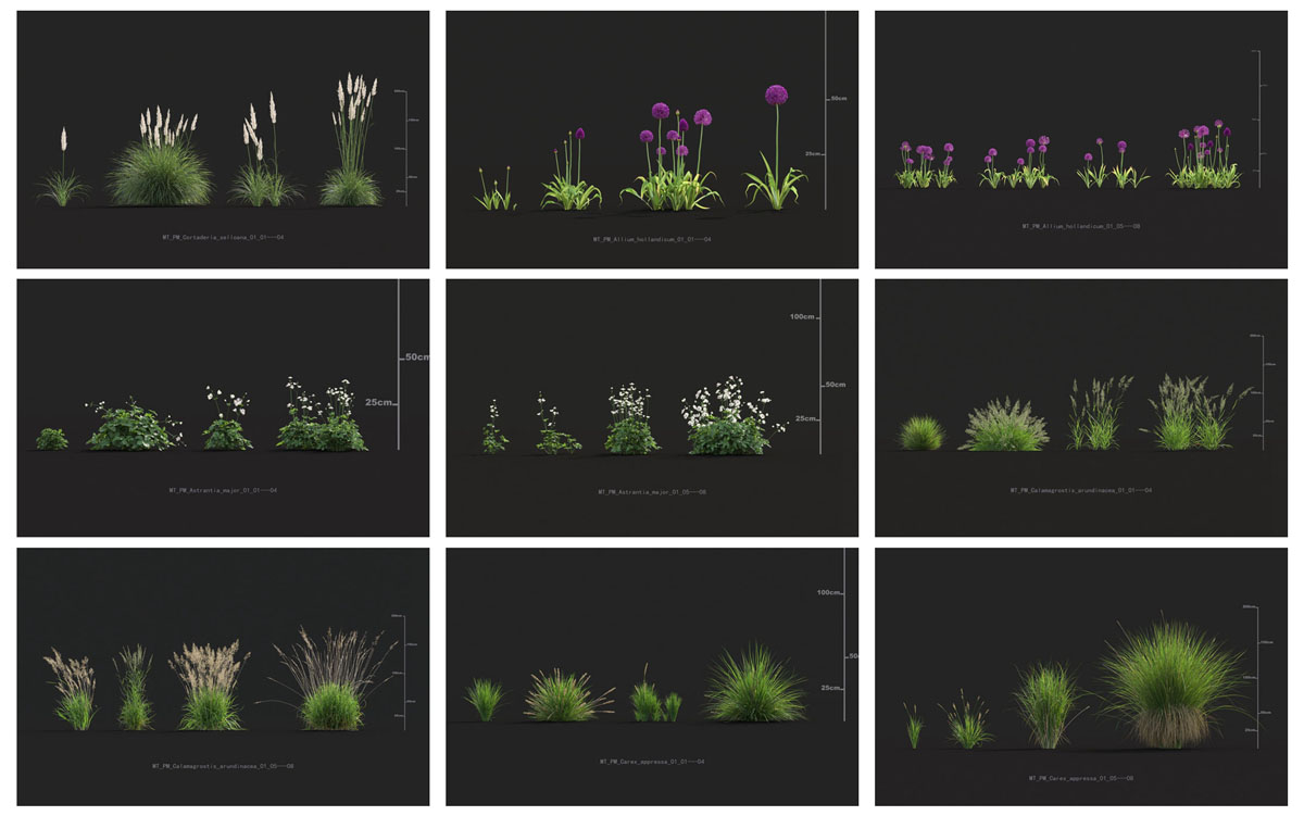 Plant Models Vol 20是高质量3D草模型的集合。包括28种,共224个模型。