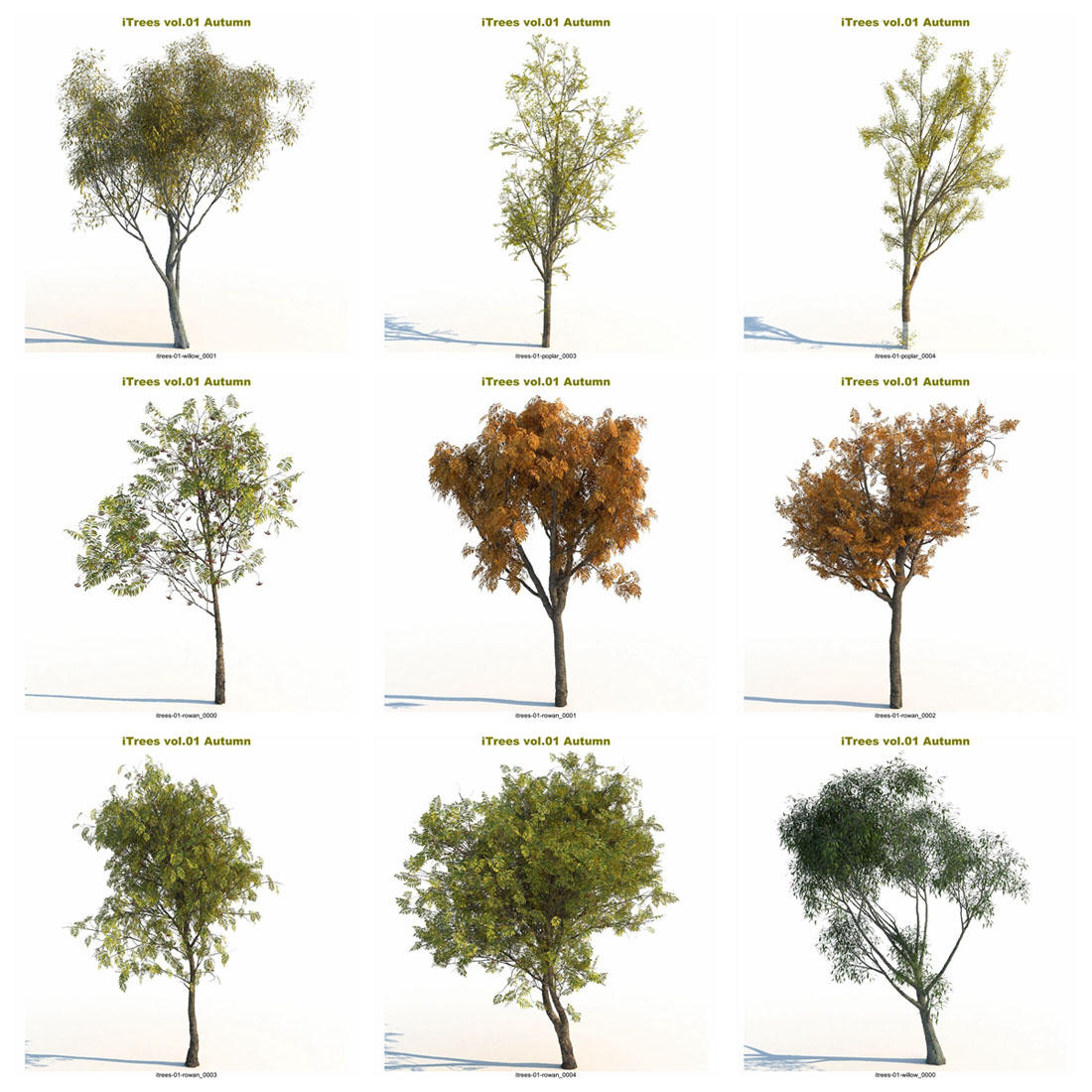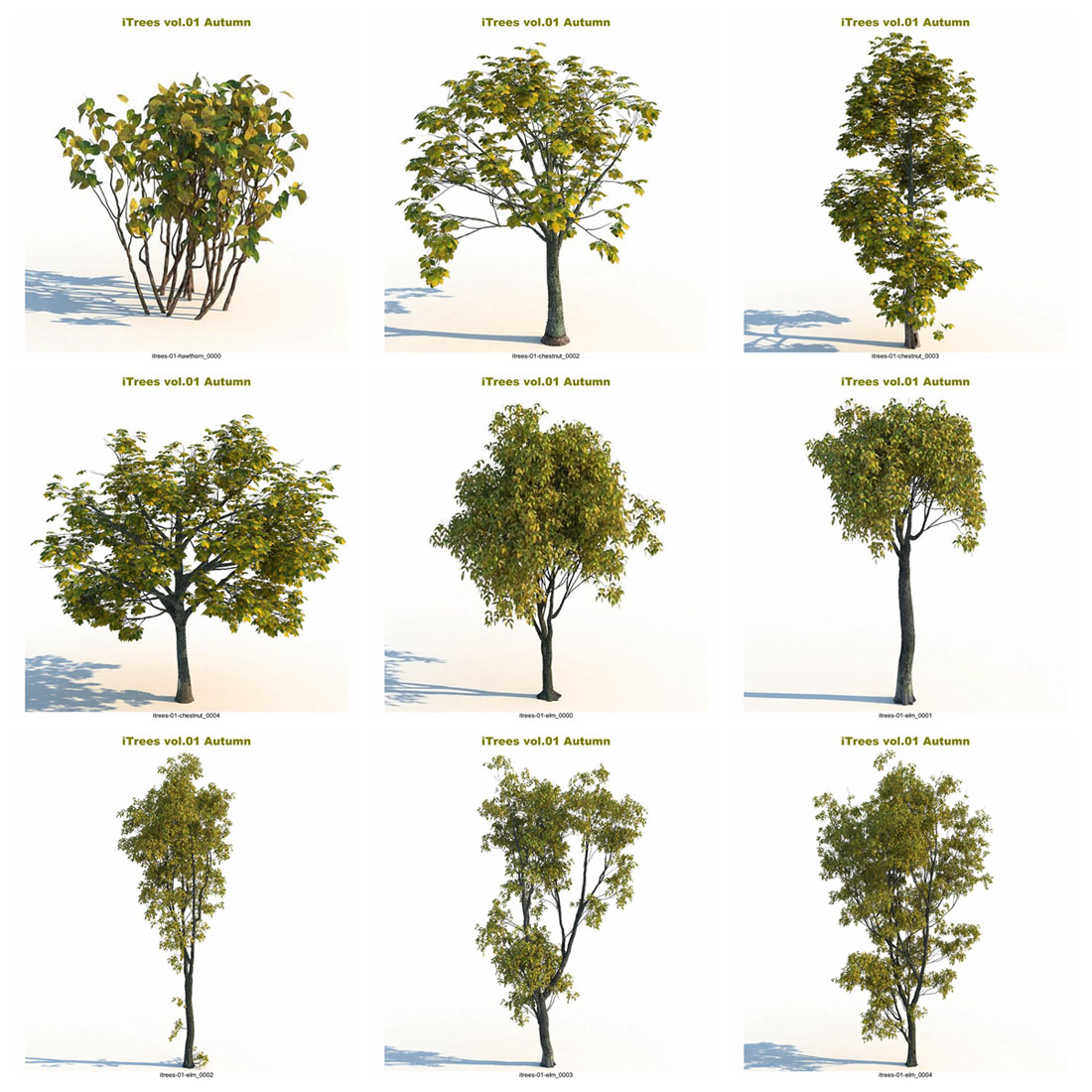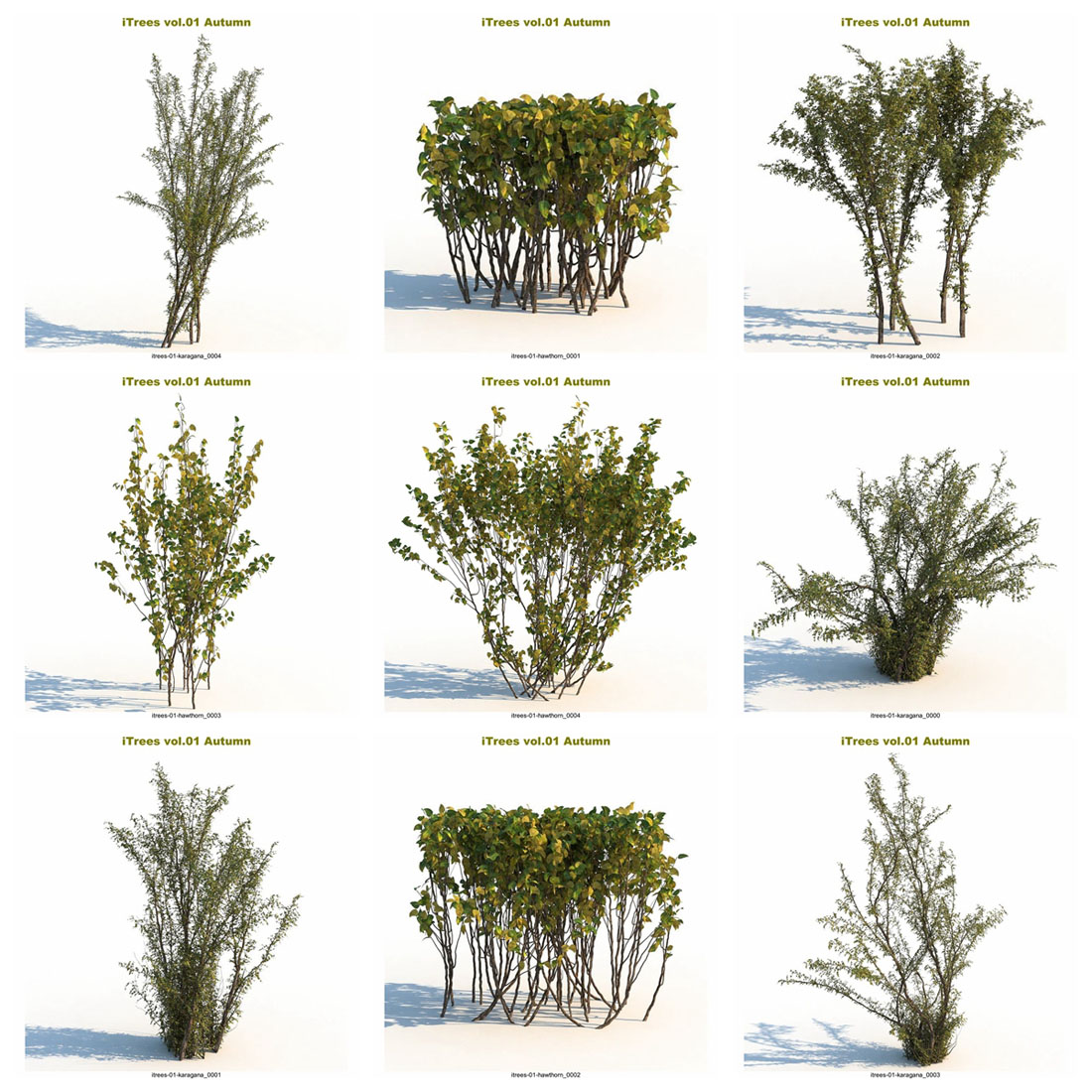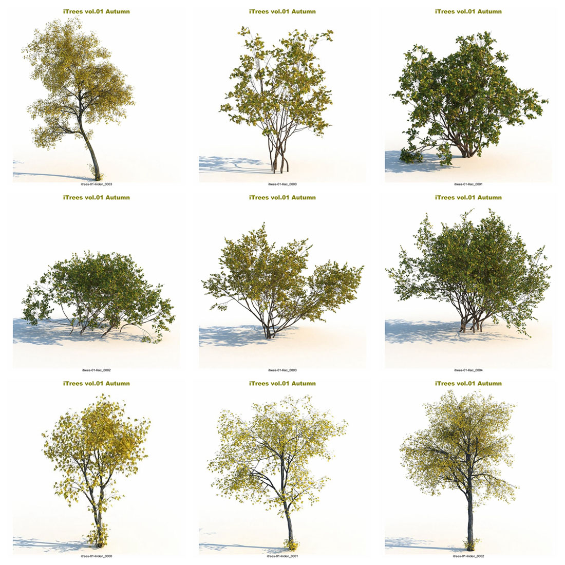 这个“秋天”系列将把您的 3d 场景带入一个新的水平。 - 15 种树木和灌木,每种由 5 种变体组成。