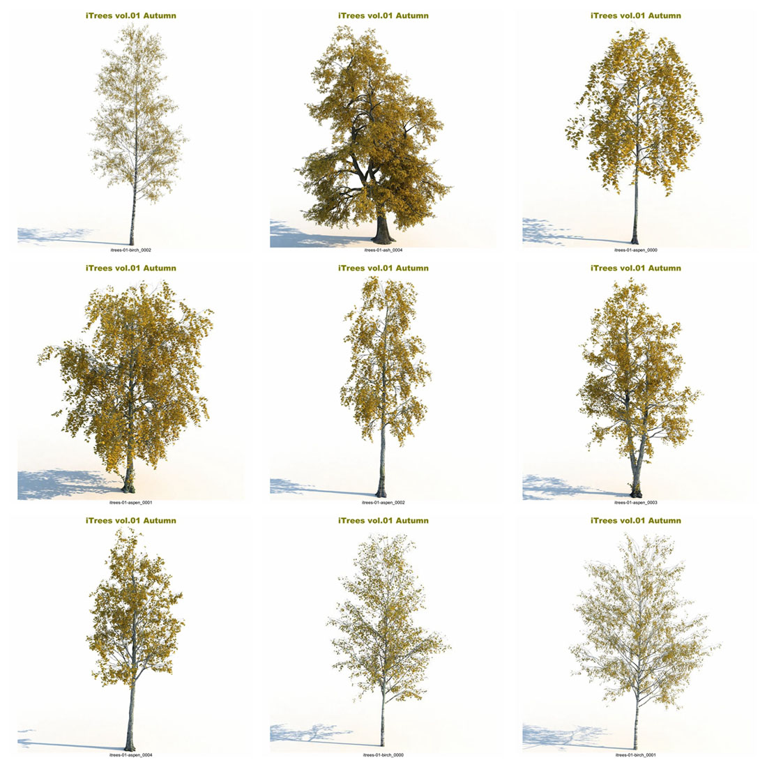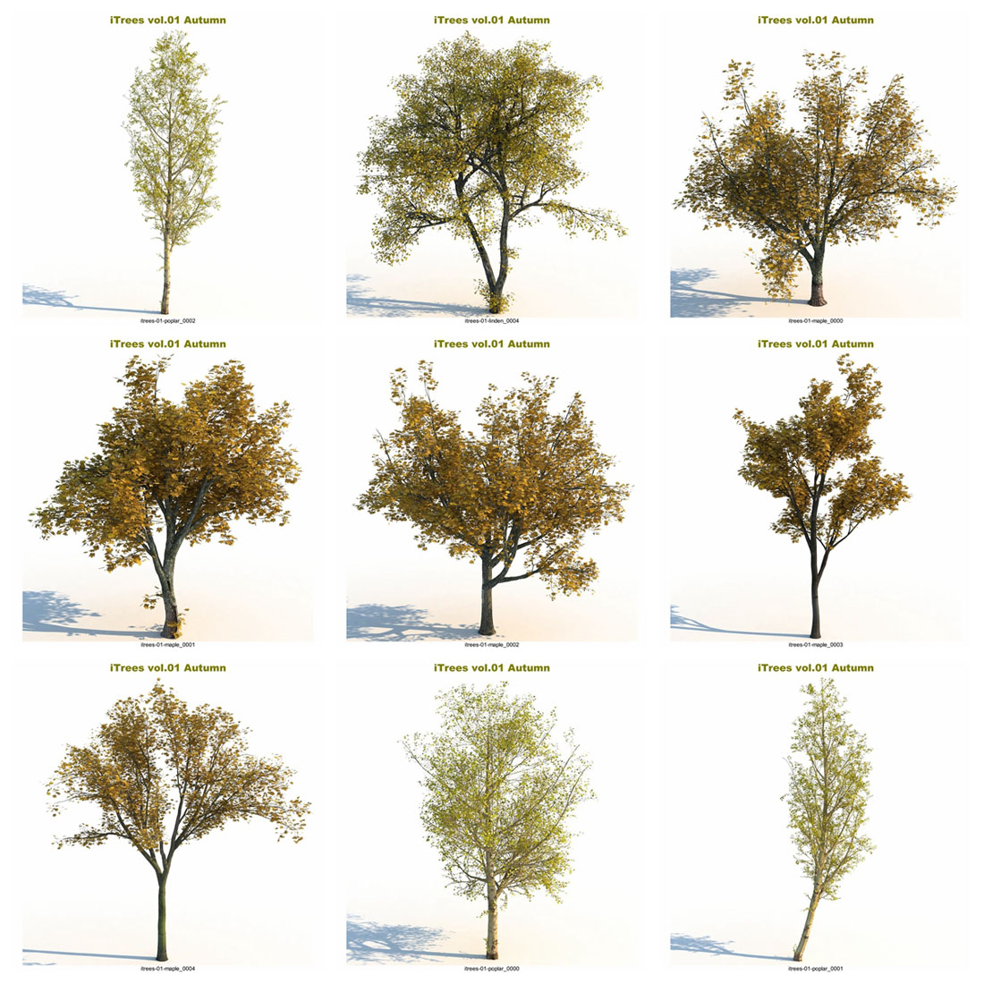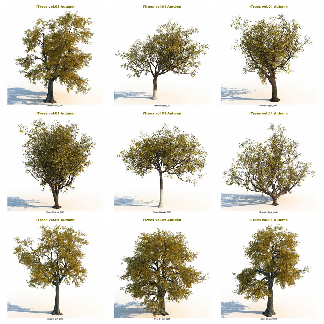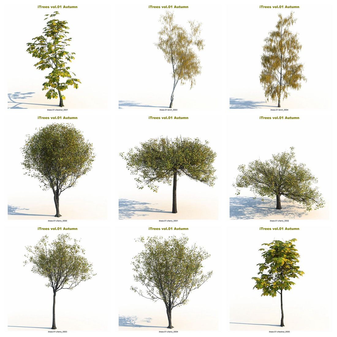 这个“秋天”系列将把您的 3d 场景带入一个新的水平。 - 15 种树木和灌木,每种由 5 种变体组成。