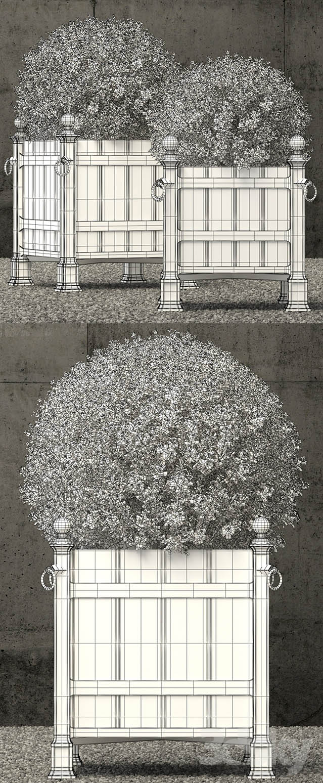 High quality 3d models restoration hardware planters Formats included: * .max with materials and textures * .fbx with materials and textures poly: 1304074 verts: 1238930