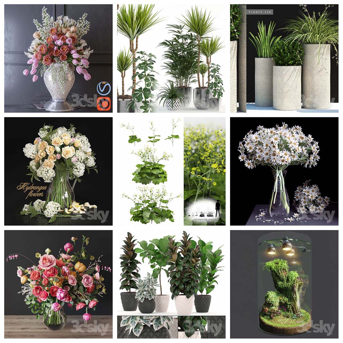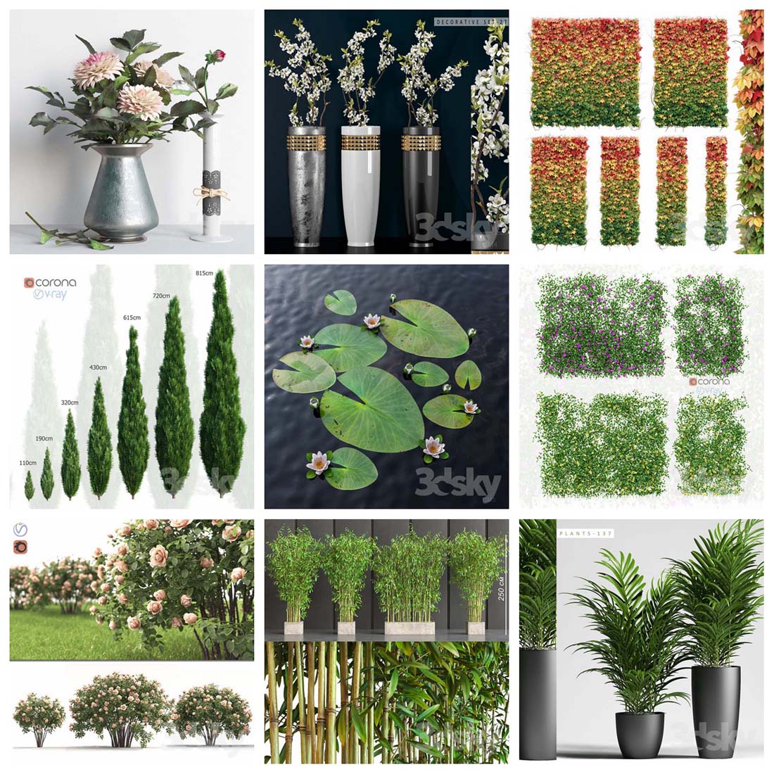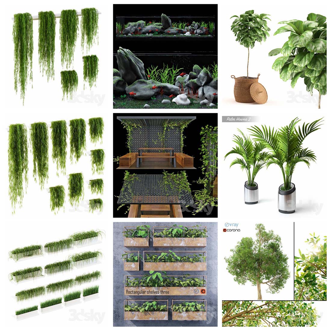 今天素材之家给大家分享的这款3D模型资源名称为:147款绿色盆栽盆景植物3D模型,内容与盆栽3D,盆景3D,绿色植物3D,3DMAX相关,文件大小为6.6 GB,模型文件格式为MAX。