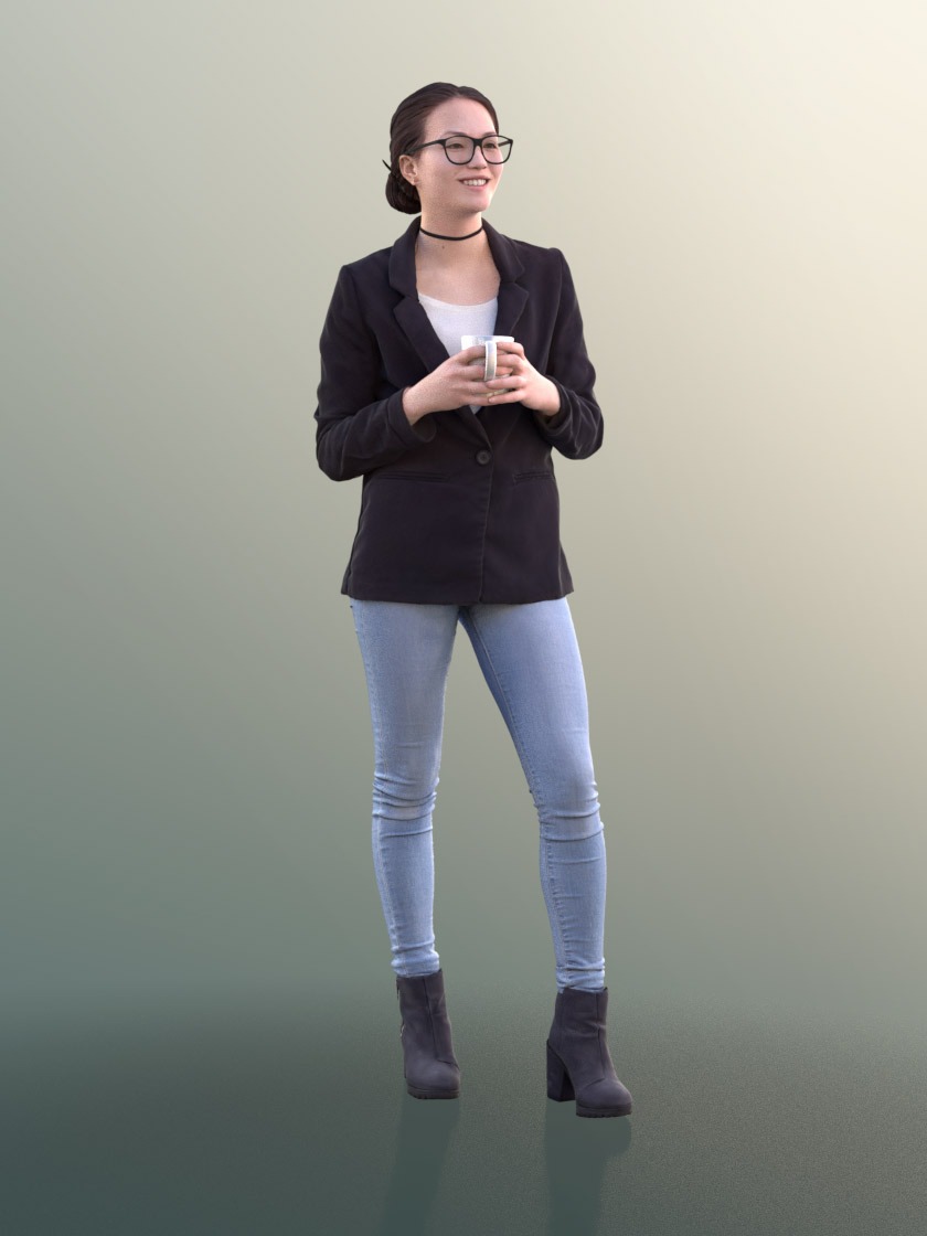 我们准备好的摆姿势的人将完全适合您的场景。让我们尝试一下。3D扫描的人可以激活您的视角,只需选择模型,将其放到场景中并进行渲染即可!