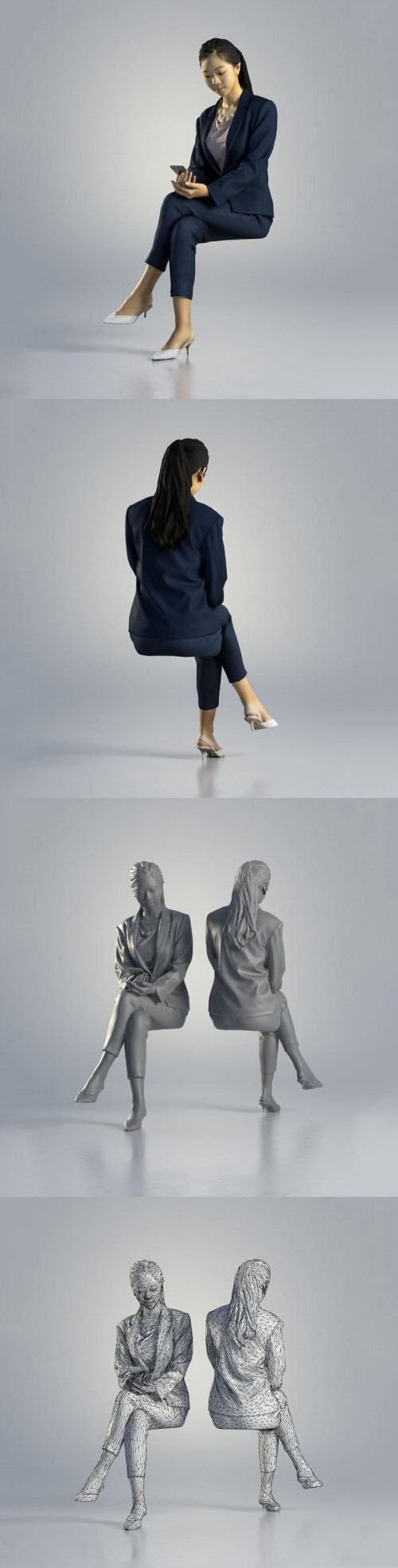 坐着玩手机的商务美女人物素材之家精选3D模型