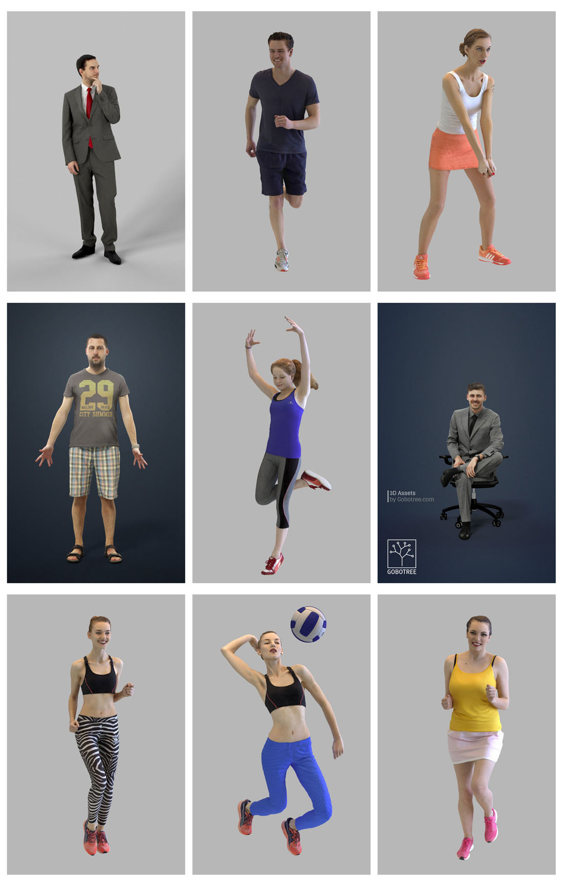 今天素材之家给大家分享的这款3D模型资源名称为:81款休闲商务运动男人和女人人物3D模型,内容与人物3D,商务3D,休闲3D,男人3D,女人3D,3DMAX,3D模型,MAX,OBJ,FBX相关,文件大小为2.64 GB,模型文件格式为MAX OBJ FBX。