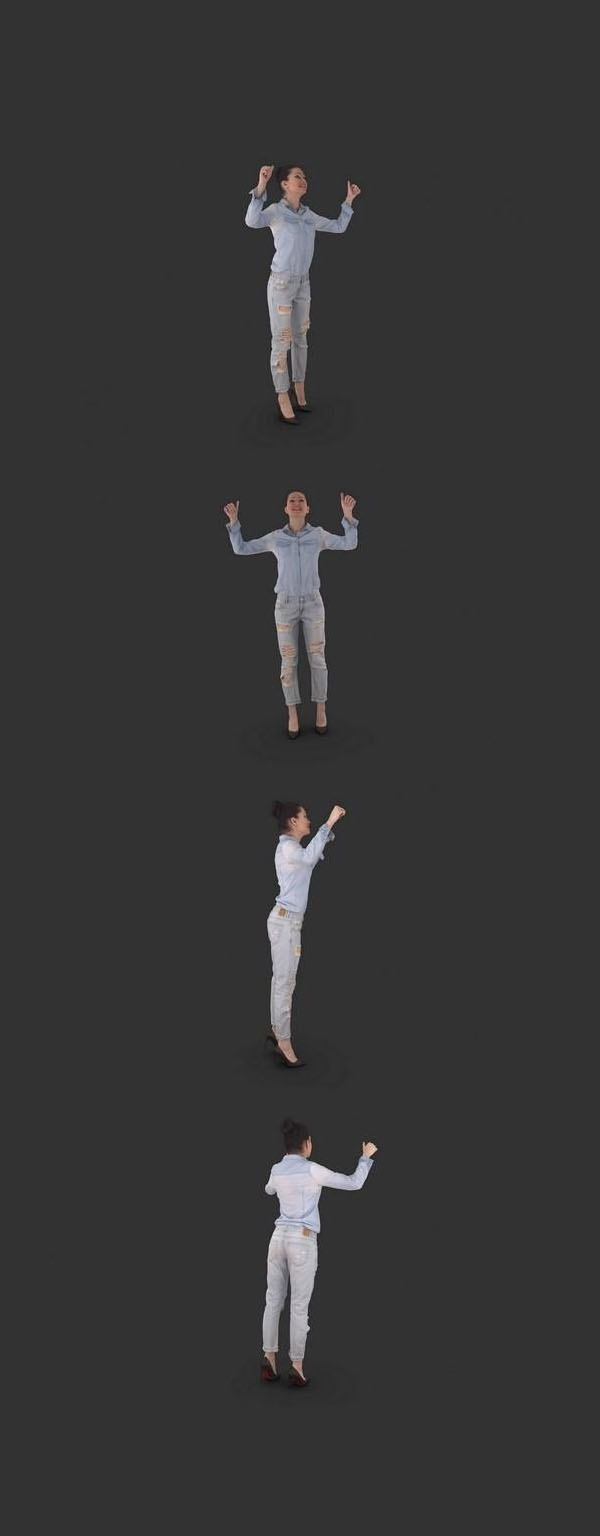 举起双手欢呼的年轻女人素材之家精选3D模型