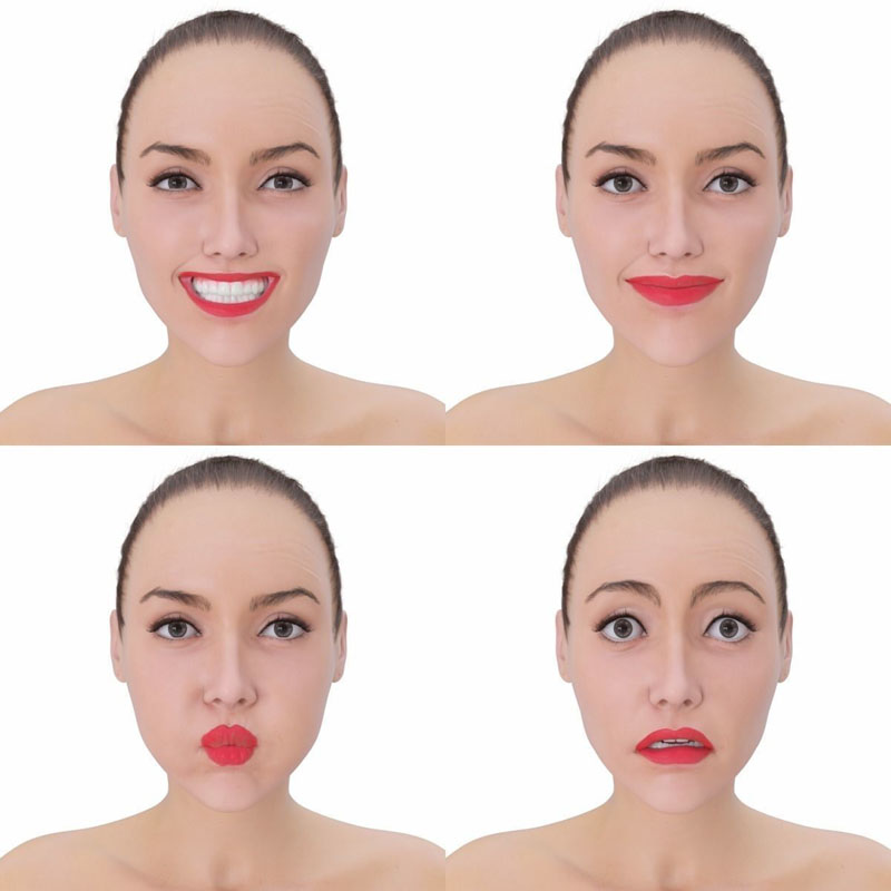 角色被绑定和蒙皮(Biped + Skin)。由 Morpher 修改器控制的面部动画。 Morpher 连接到视口滑块。面部动画由 30 多个变形目标控制。完全控制面部 - 嘴巴、眼睛、眉毛、下巴、舌头等。面部表情:张开嘴;微笑;嘴唇张开;愤怒/恐惧;伸出舌头;舌头舔;下巴张开;颚侧;下颌前部;眉毛;眼睛(眨眼);眼睛虹膜(瞳孔大小);等由音素控制的唇形同步:A; E; ○;磷;你; (C、D、G、K、N、R、S、Y、Z); (F,V);钍;大号; (W,OO,Q) 模型也有几个置换贴图来为混合形状效果添加细节。