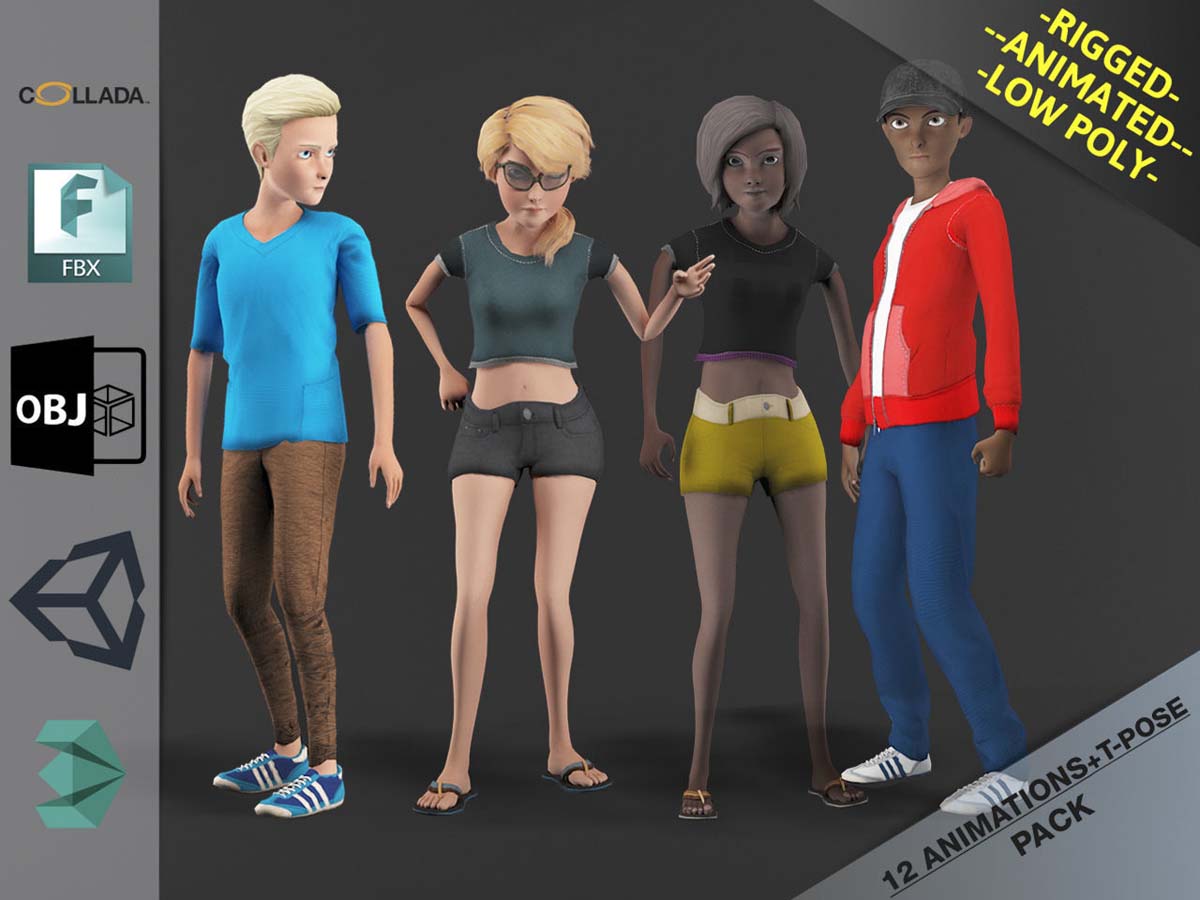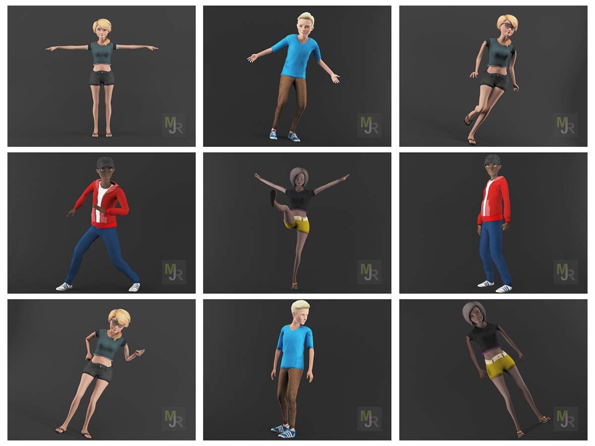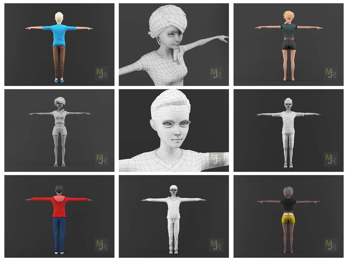 卡通人物Pack3低多边形3d模型准备虚拟现实(VR),增强现实(AR),游戏和其他实时应用程序。