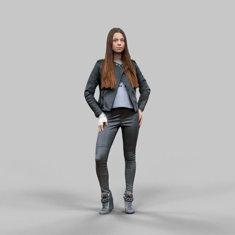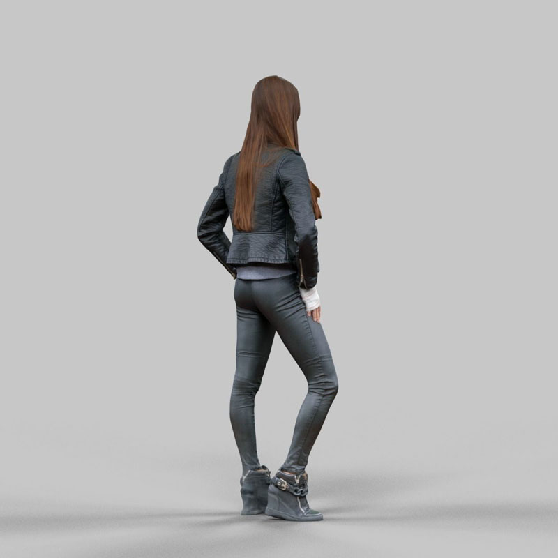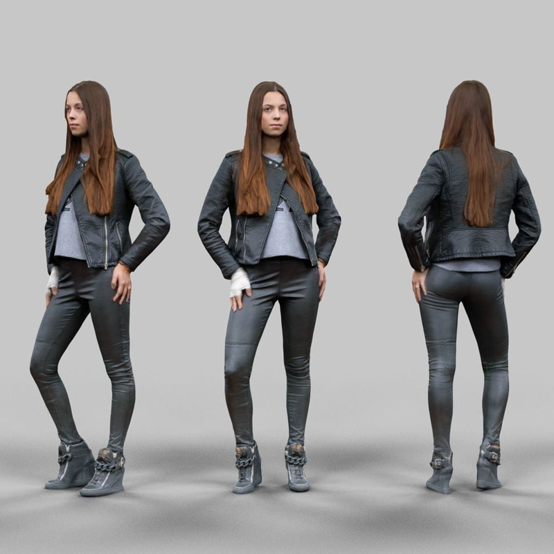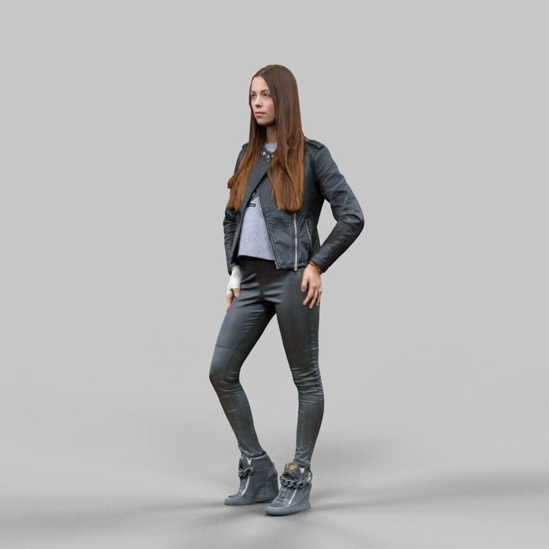 穿皮夹克时尚长发女人素材之家精选3D模型