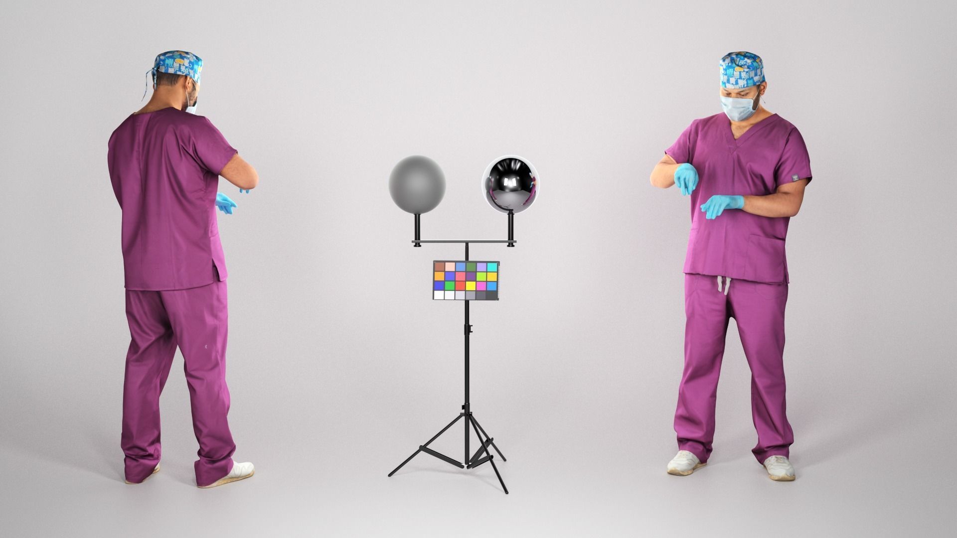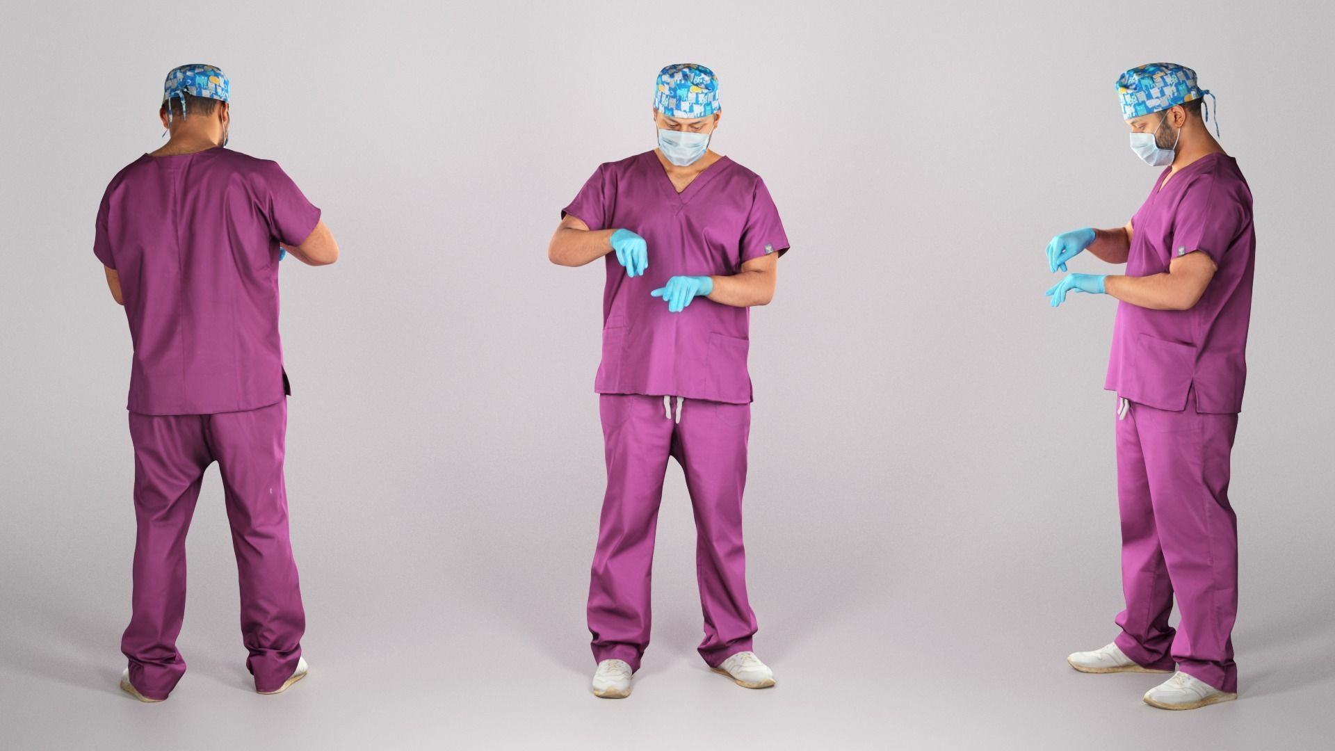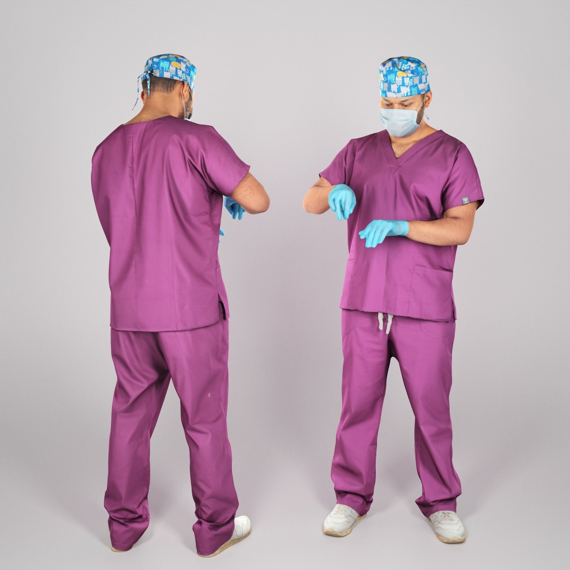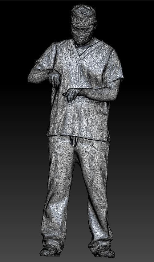 这是一个真人大小的模型,并且是一个穿着外科制服的医生。以休闲姿势捕获模型,以完美匹配各种建筑可视化,背景特征,产品可视化,例如广告横幅,专业产品/设备演示,VR / AR内容等。