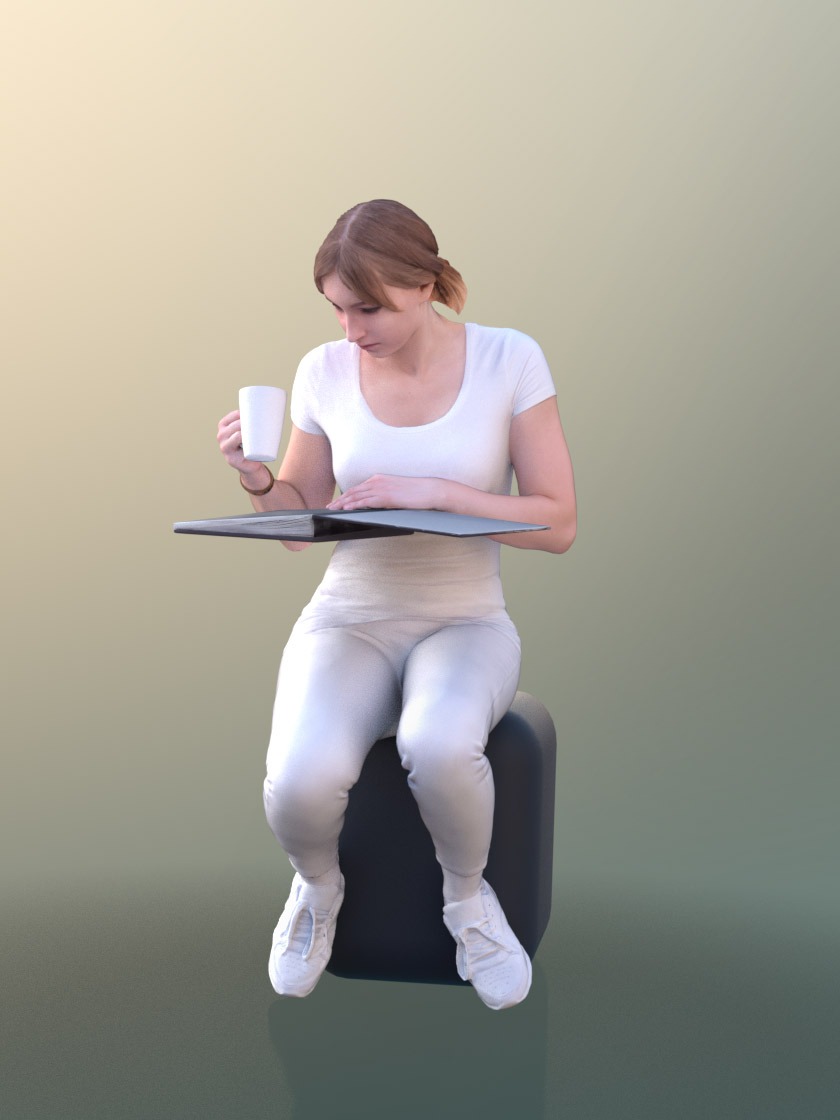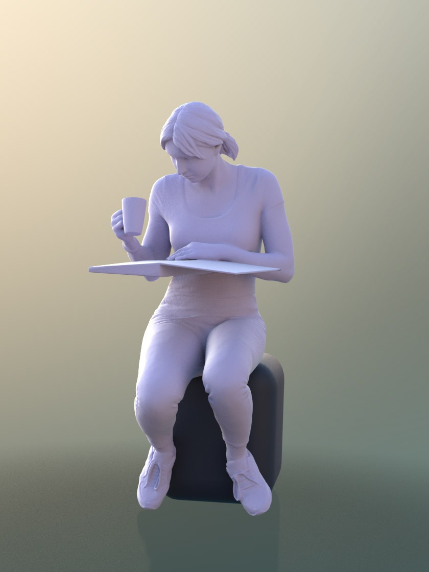 坐着看文件的商务女人OBJ格式素材之家精选3D模型