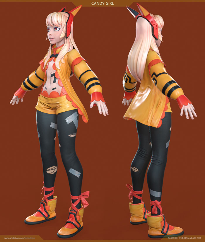 这部艺术作品是根据Gui Guimaraes的《 Candy Girls》改编的,这是游戏角色Candy Girl 2。