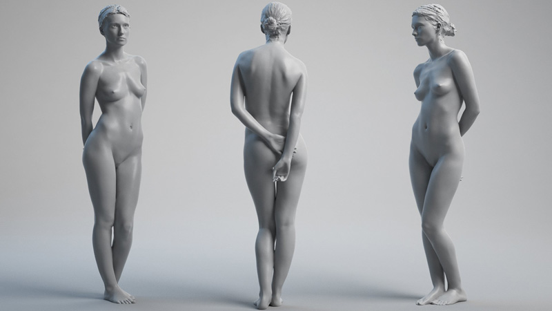 古典女性身体扫描套装具有16种不同的3D扫描古典姿势,非常适合解剖,雕刻和绘画参考。 每次扫描均以200,000个多边形OBJ和FBX文件的形式提供,为易于使用,我们还包括一个Zbrush工具,该工具包含所有3d模型作为单独的子工具。 这些模型没有重新分布或UV映射,并且不包含纹理,它们仅用作参考模型。