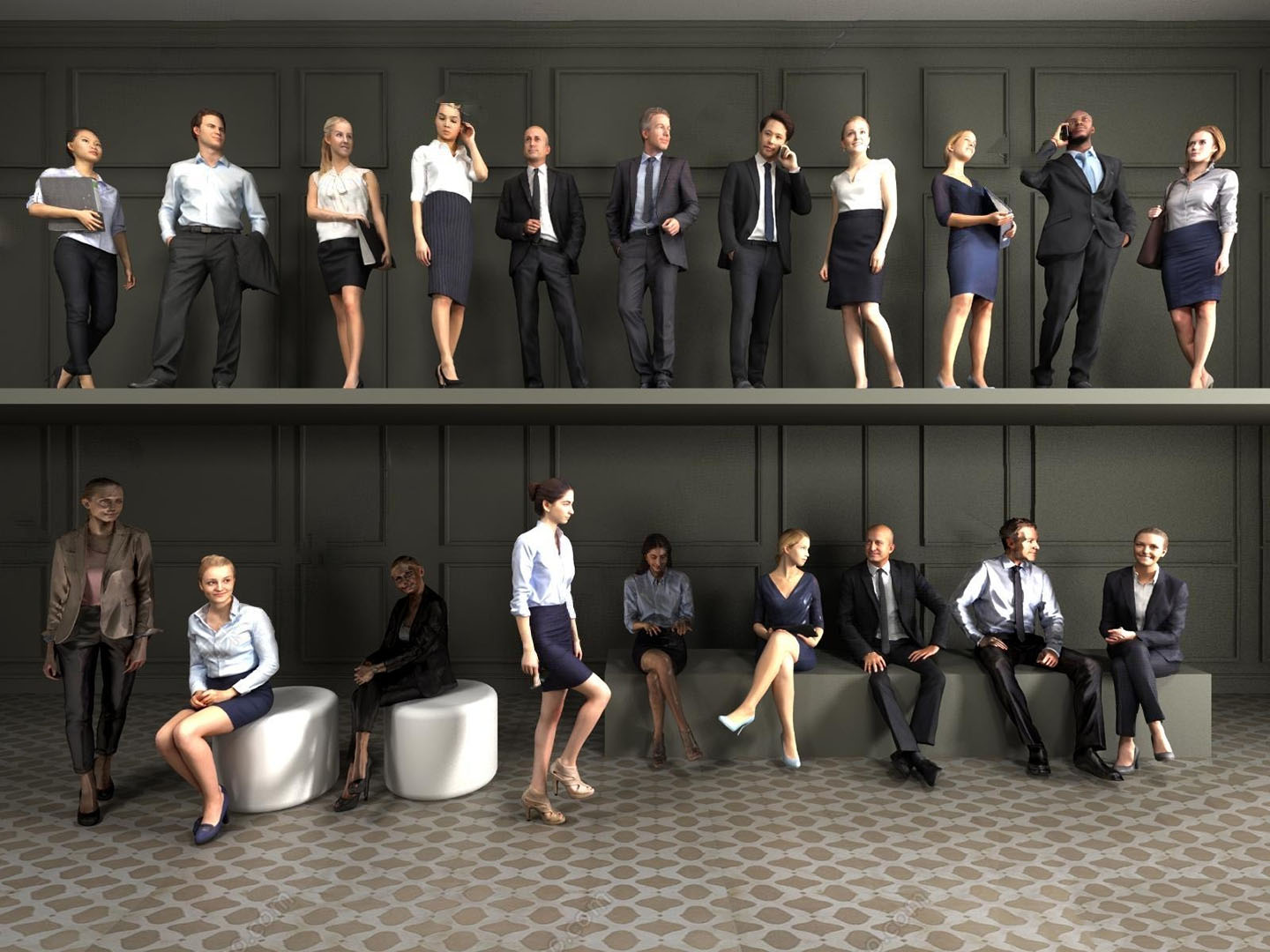 现代职场商务男人女性人物素材之家精选3D模型