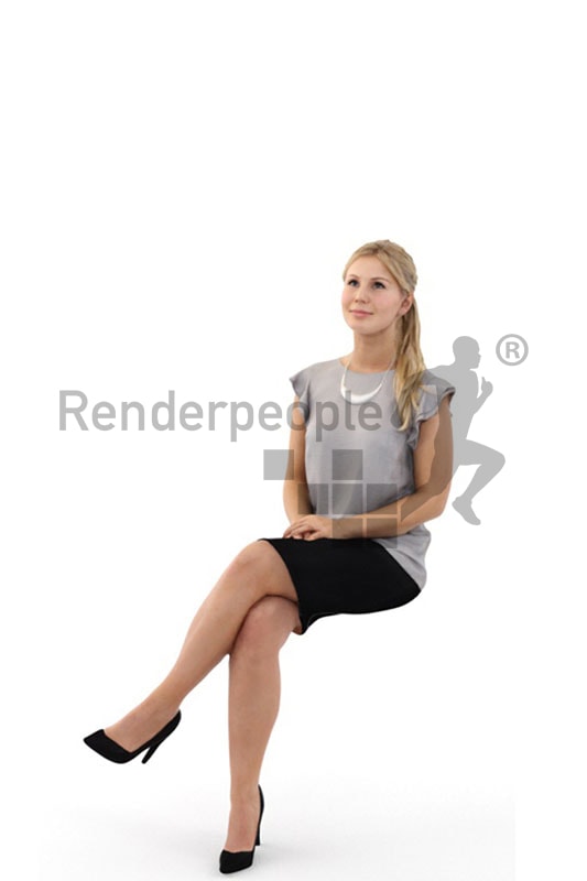 坐着姿势的金发美女素材之家精选3D模型