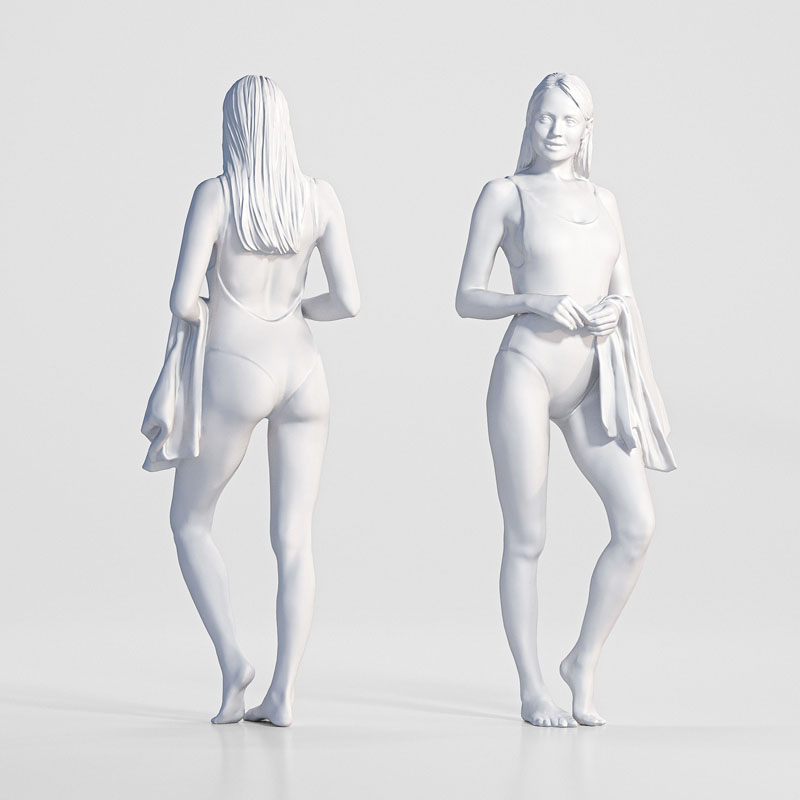 逼真的 3D 人物。 该姿势模型已在我们的摄影测量扫描仪中捕获。