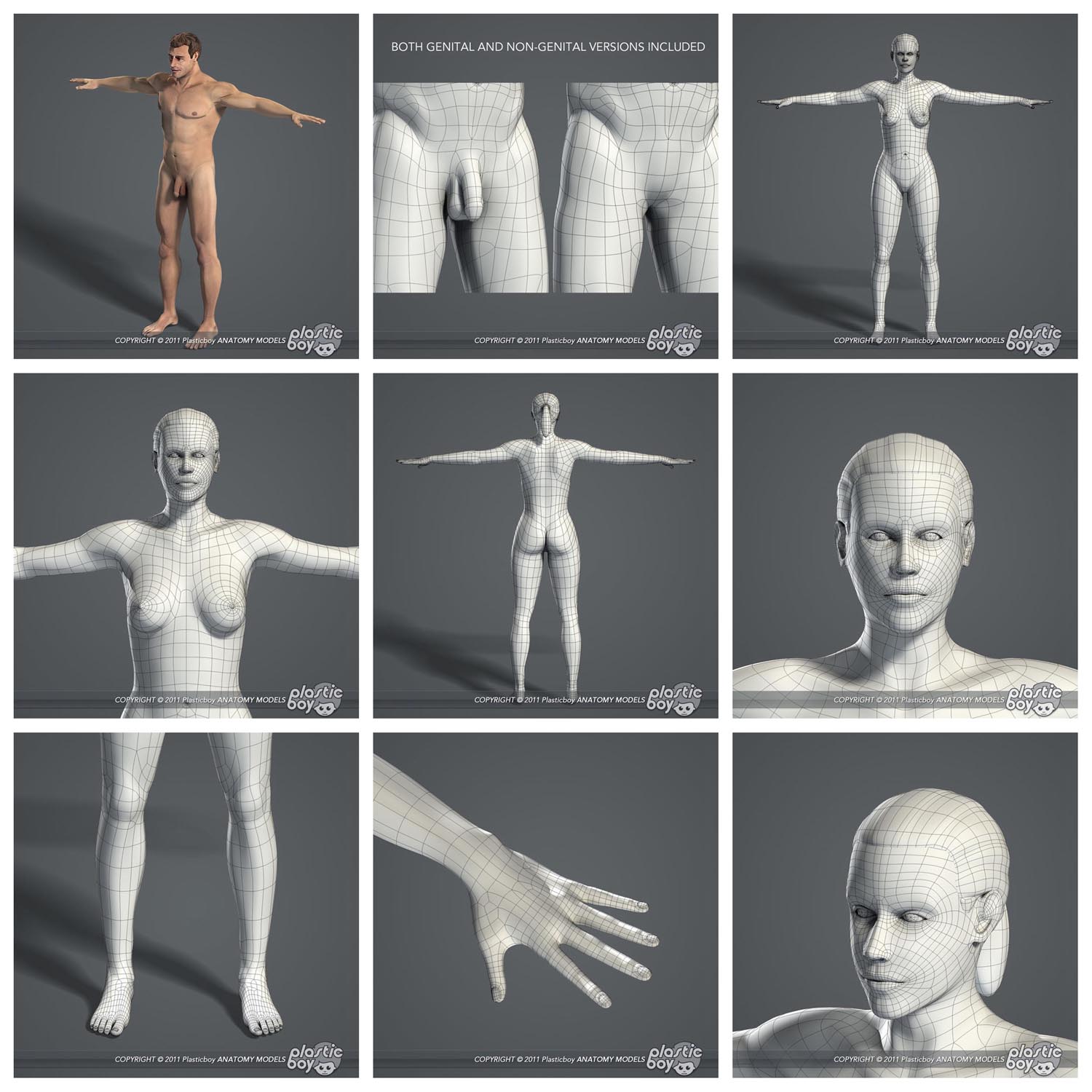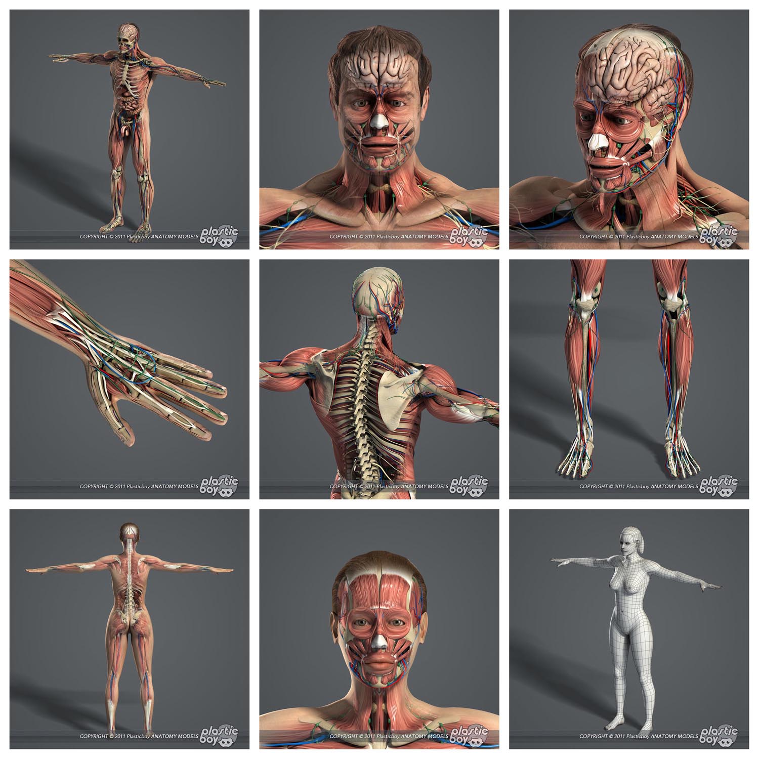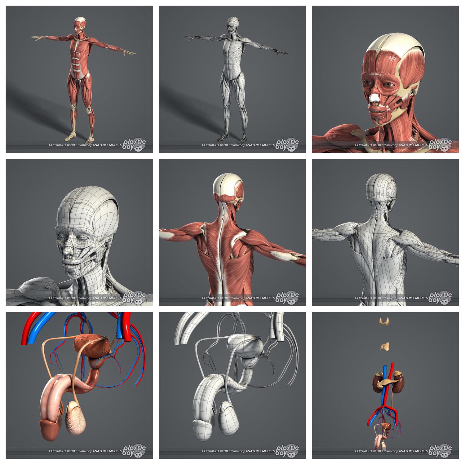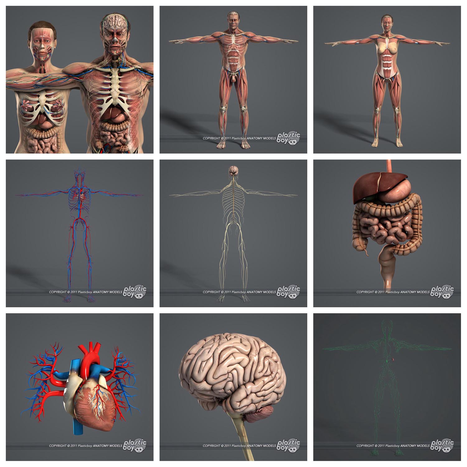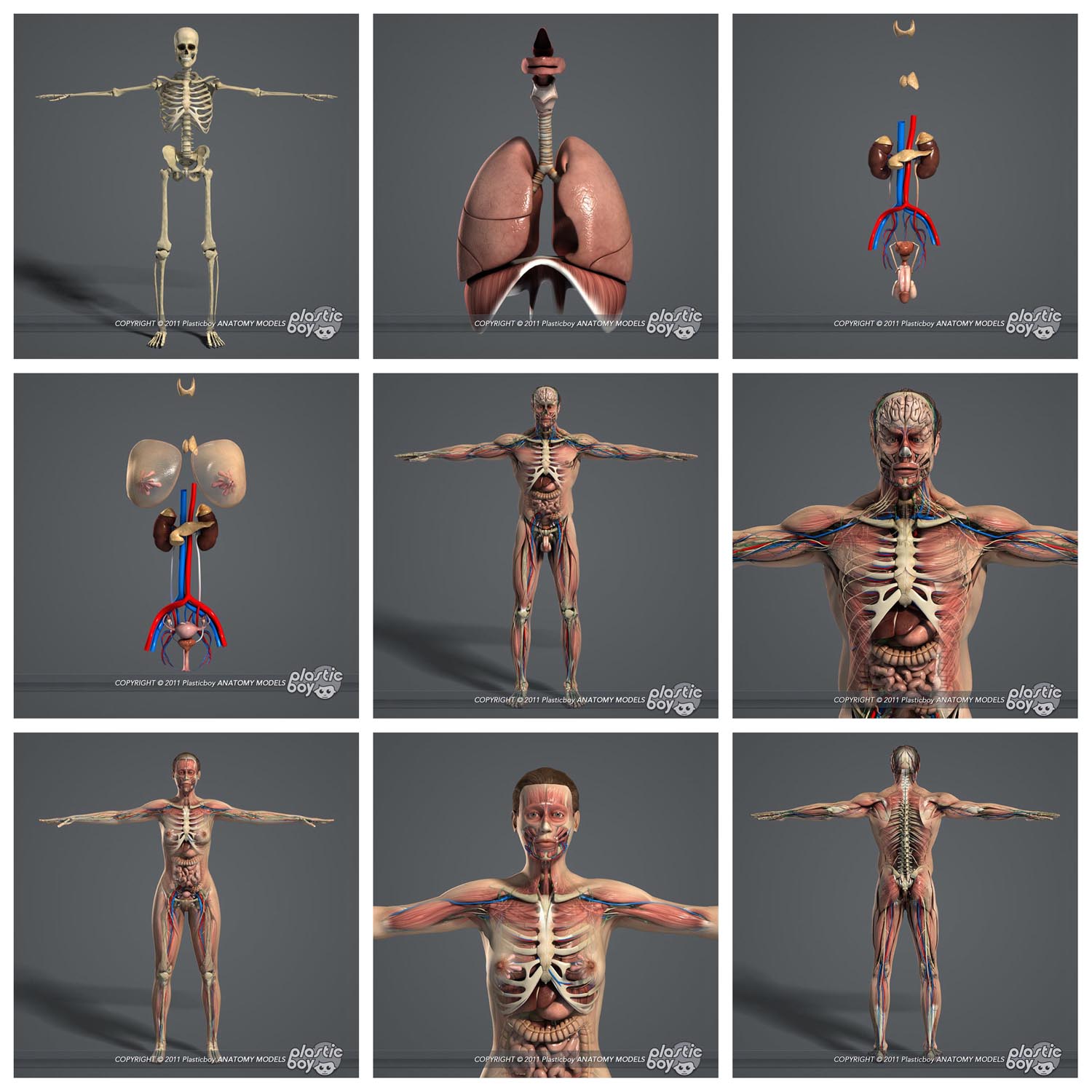 这是男性和女性解剖结构的3D模型(包括所有解剖系统)。