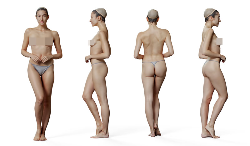 这个女性解剖学参考包具有 20 个参考姿势。 这些模型非常适合研究解剖学或用作您自己独特性格的基础。 我们的参考姿势是使用 RAW 扫描数据投影和使用 Zremesher 的自动拓扑生成的组合生成的。 每个模型都带有一个 5 细分 ZTL 模型,最高级别有 7.5 到 800 万个多边形。 我们还提供了一个带有 mlt 和 8k JPG 纹理贴图的 750K 抽取的 OBJ 文件。 这些模型不包含动画就绪拓扑,但适用于雕刻和基本索具和运动。