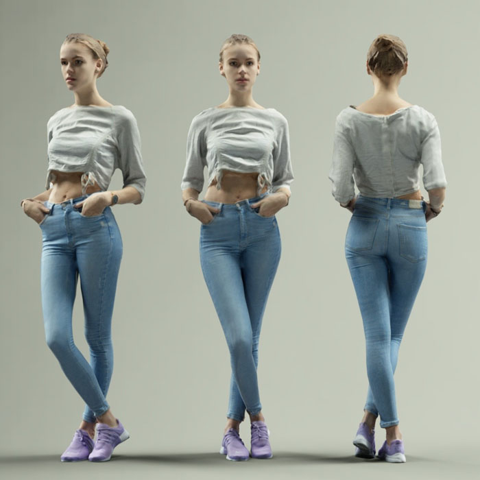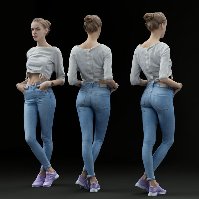 穿牛仔裤摆姿势的休闲女人素材之家精选3D模型