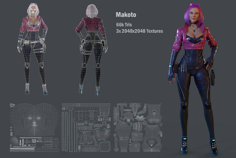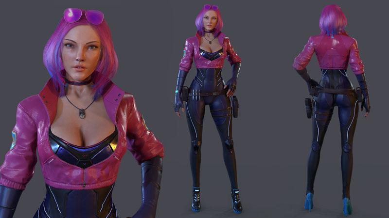 赛博朋克风格游戏女性角色素材之家精选3D模型