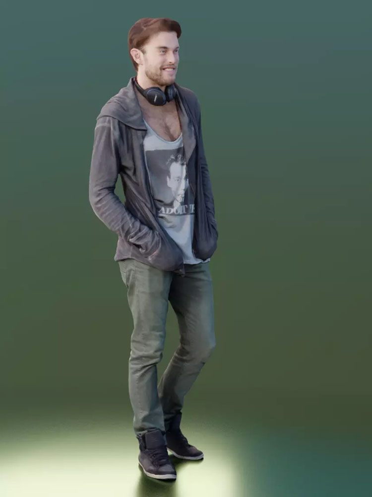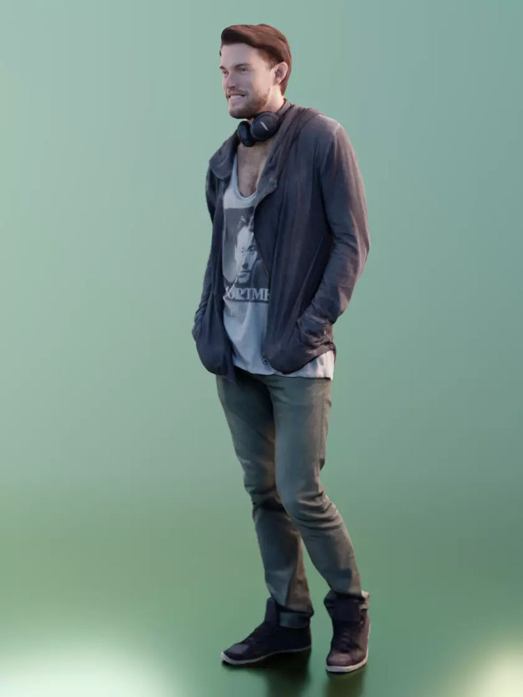 挂着耳机站立的休闲男人素材之家精选3D模型