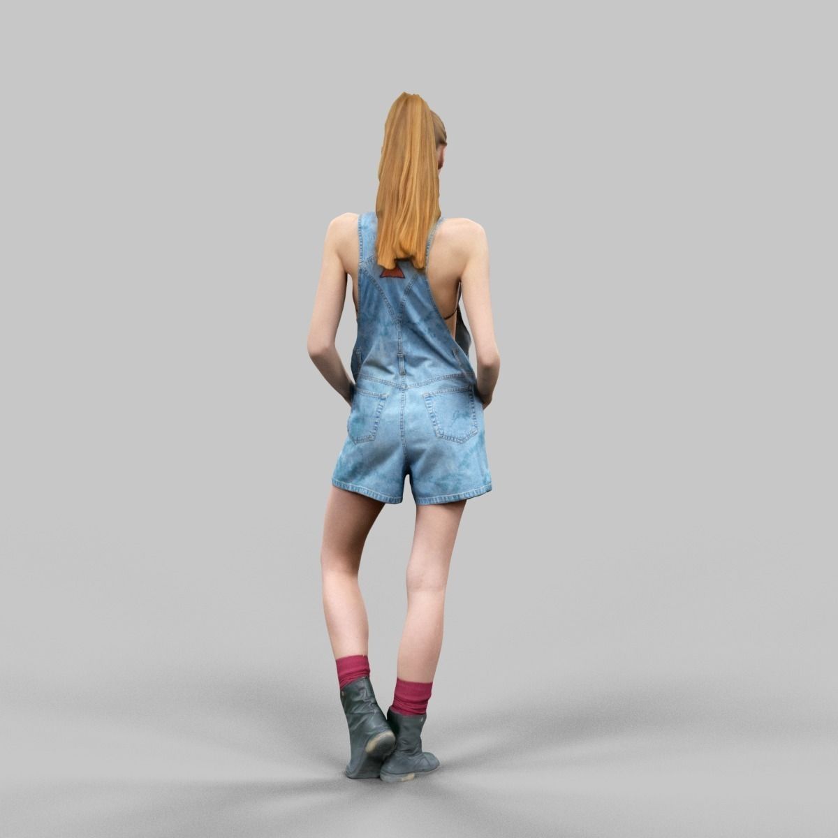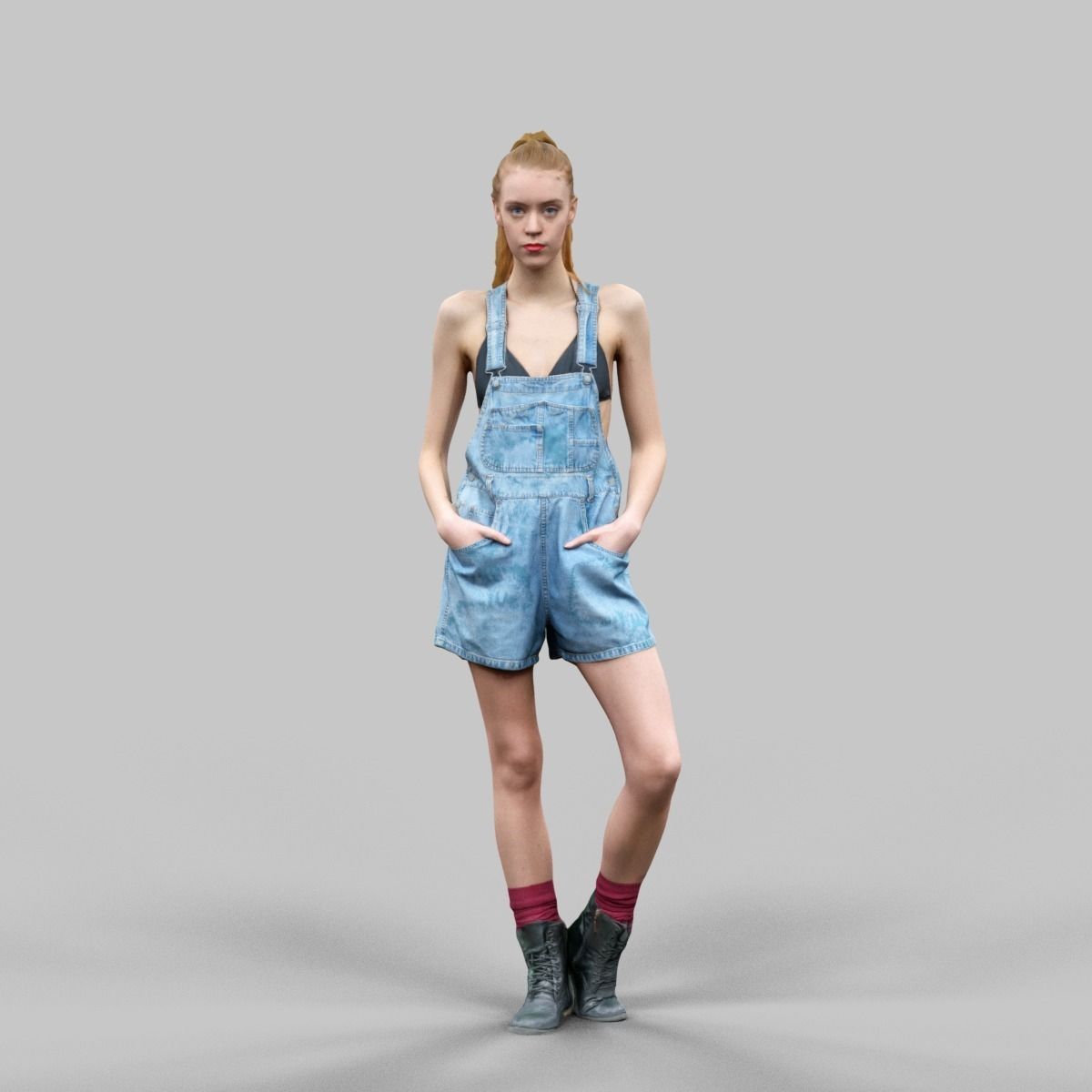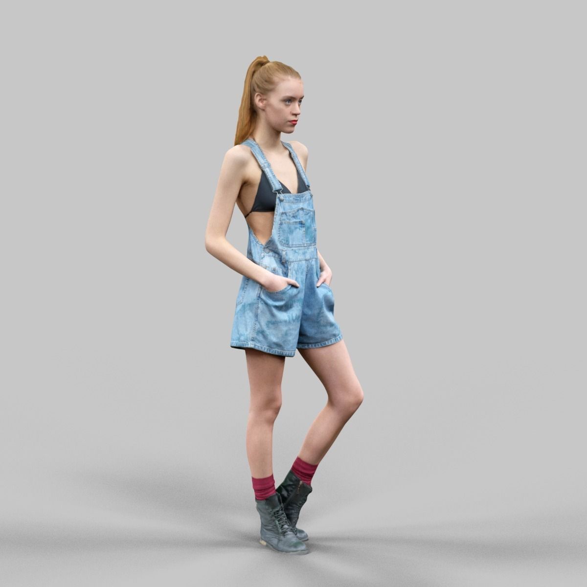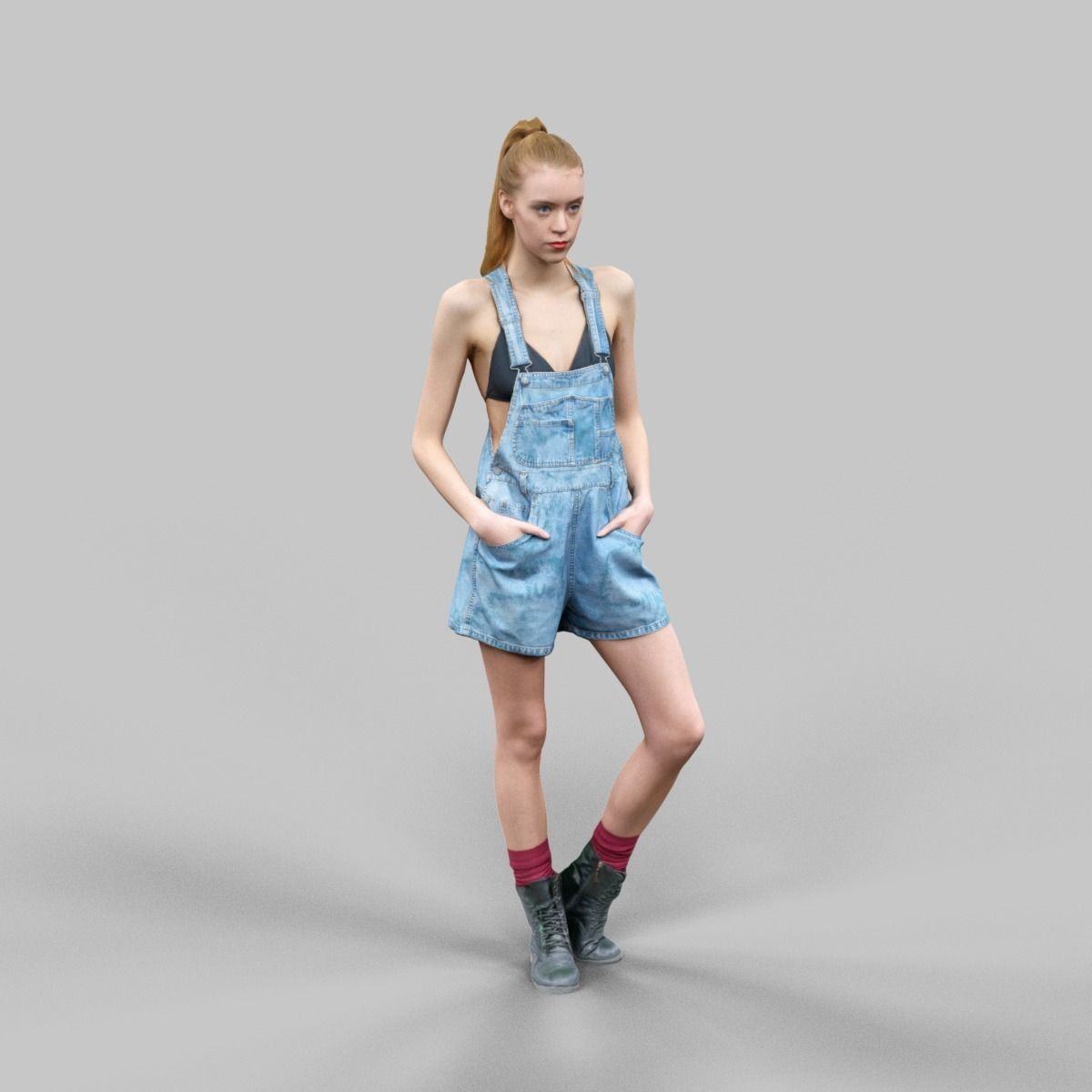 穿着牛仔背带短裤红袜子和皮靴的女模特素材之家精选3D模型