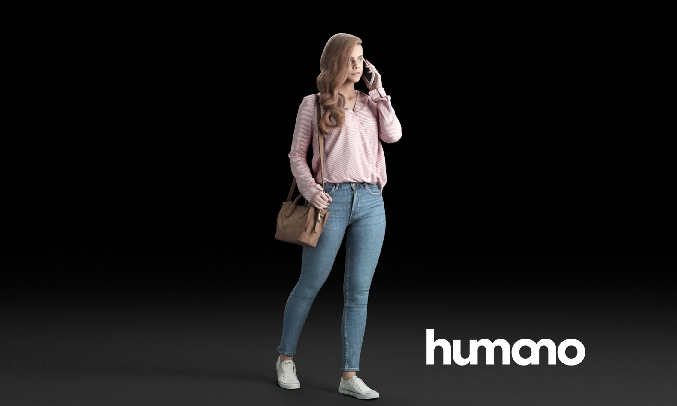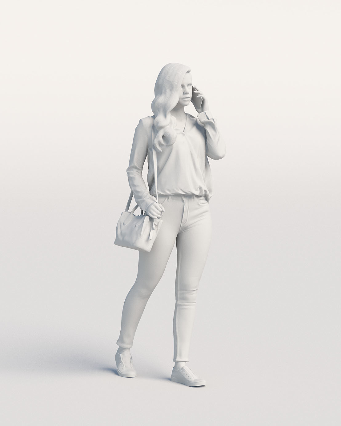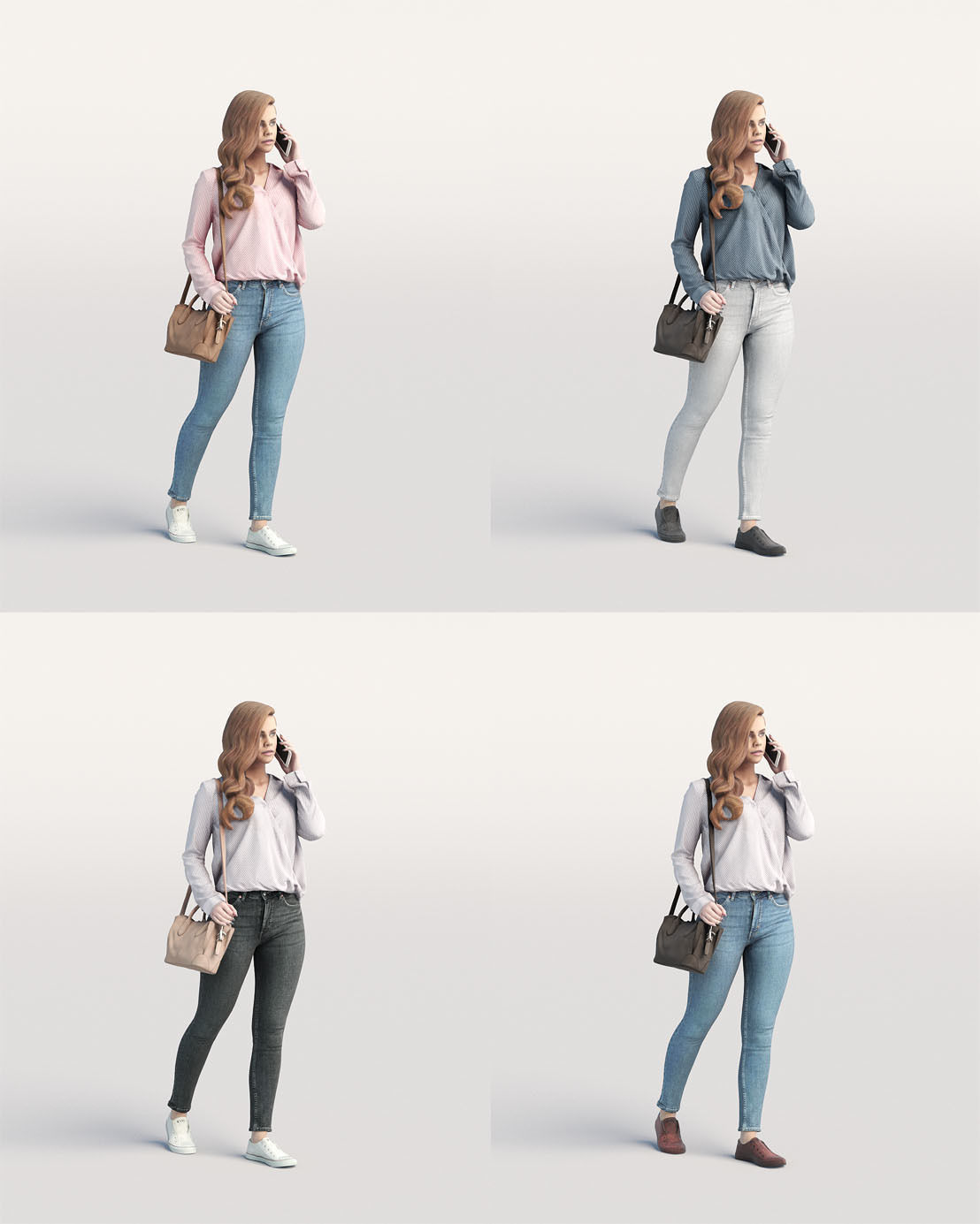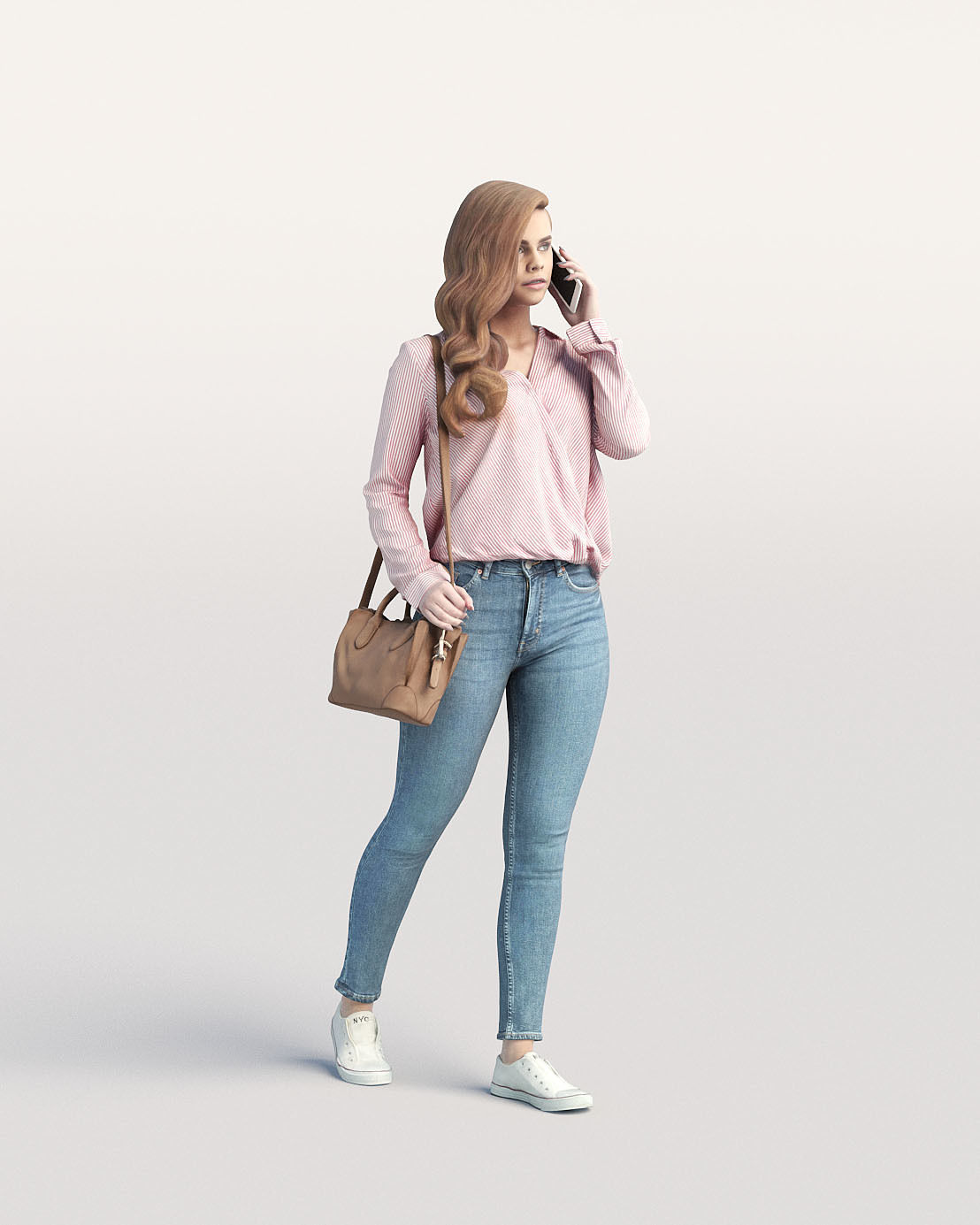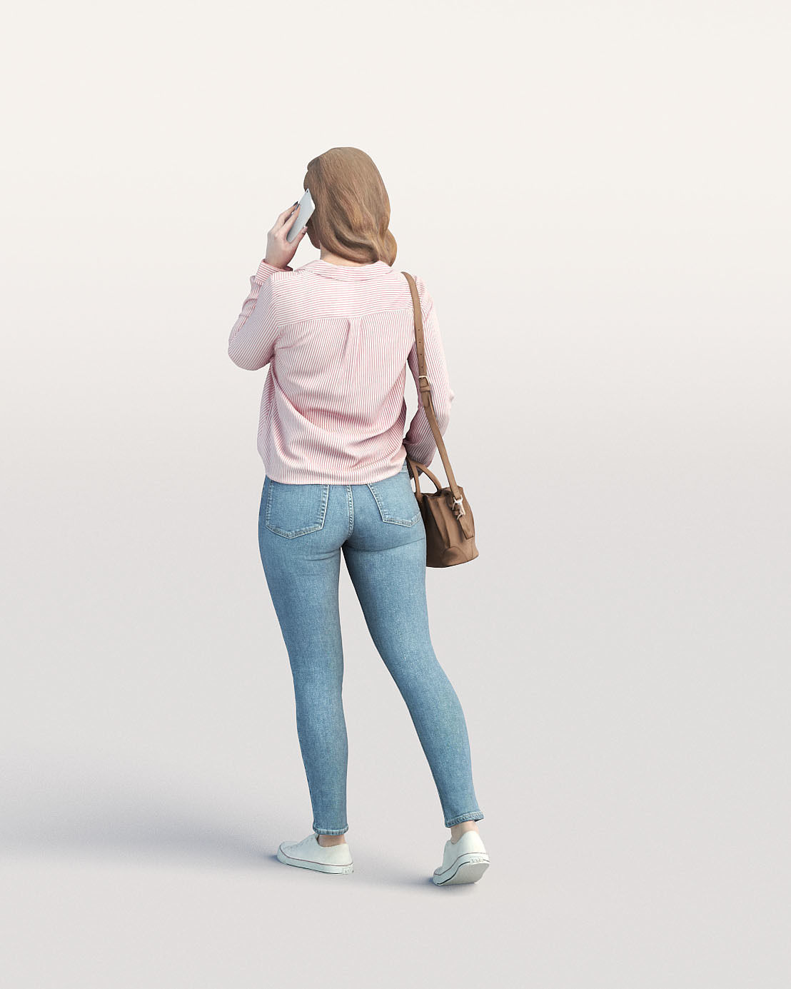 走路的休闲女人带着包和电话素材之家精选3D模型