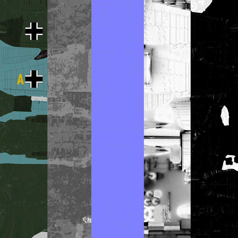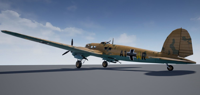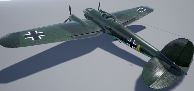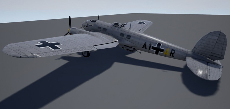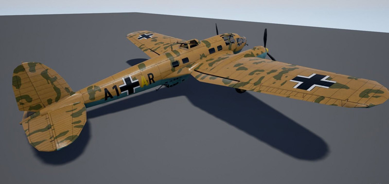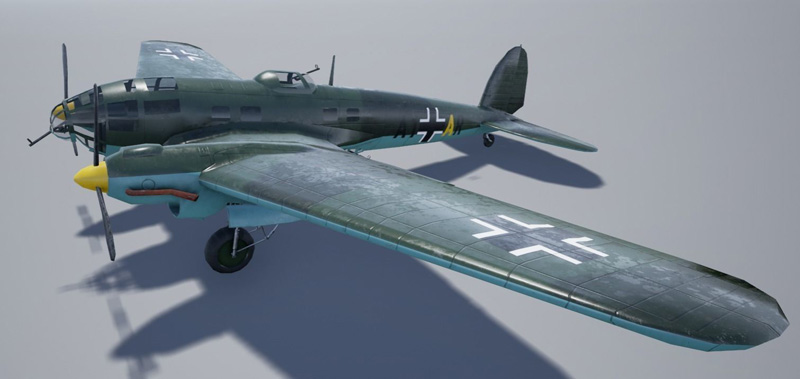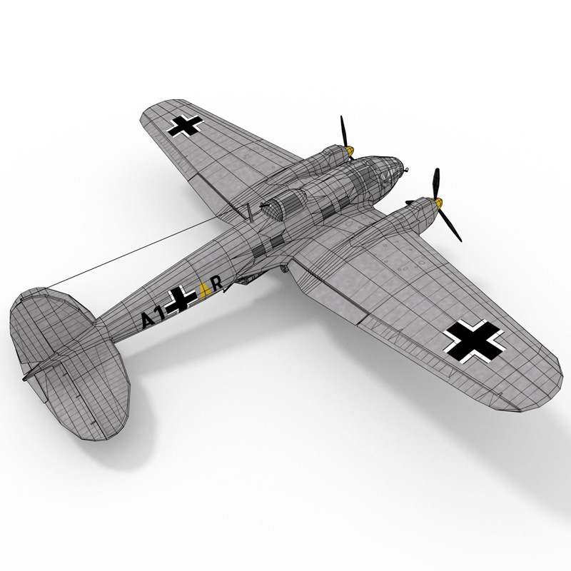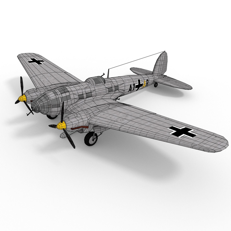 低多边形Heinkel 111,带有大型炸弹和鱼雷,非常适合游戏。 带有3种纹理,原始的photoshop文件仍带有单独的图层,便于编辑迷彩和标记。