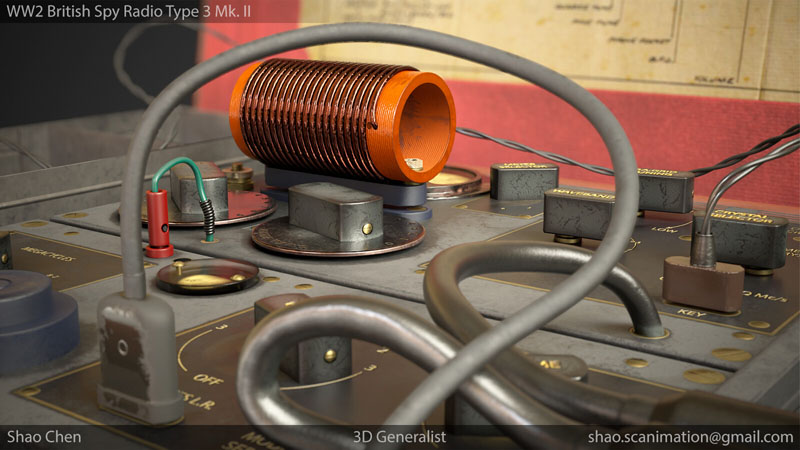 高多边形、低多边形和 UV 都是在 Maya 中完成的。 一些细节是在 Zbrush 中雕刻的。 图形是在 Illustrator 中制作的。 在 Substance Painter 中烘焙和纹理化。 在 Marmoset 4 中渲染。我是 20 世纪 WW2 和技术的忠实粉丝,所以这就是我选择为我的第一个游戏艺术道具制作间谍收音机的原因。
