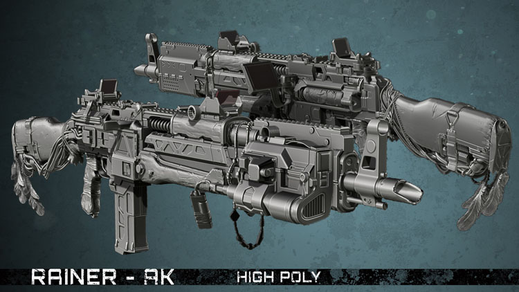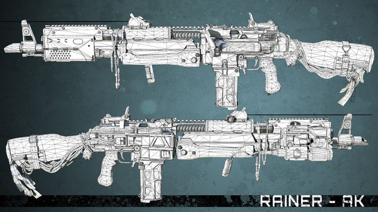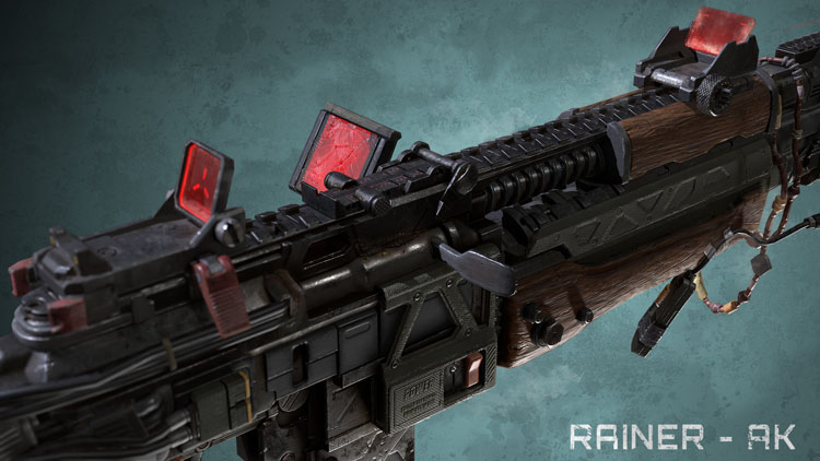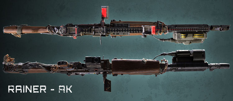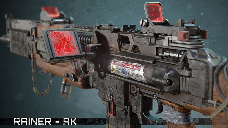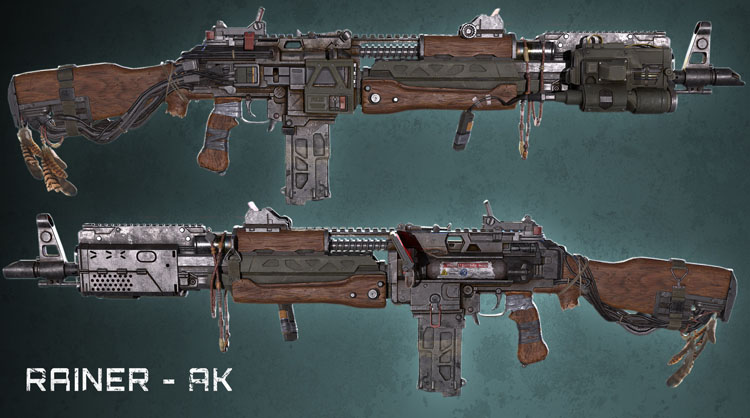升级的AK-赛博朋克风格作为基础,采用了Elijah McNeal的概念,该概念是为Neill Blomkamp的ADAM:EPISODE 2设计的。
