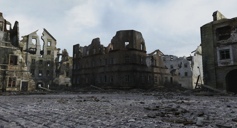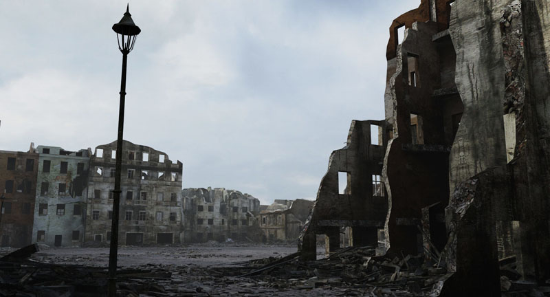这是被毁城市的非常准确的场景。基于废墟华沙的照片(1939 年和 1945 年被德国人轰炸和烧毁)。