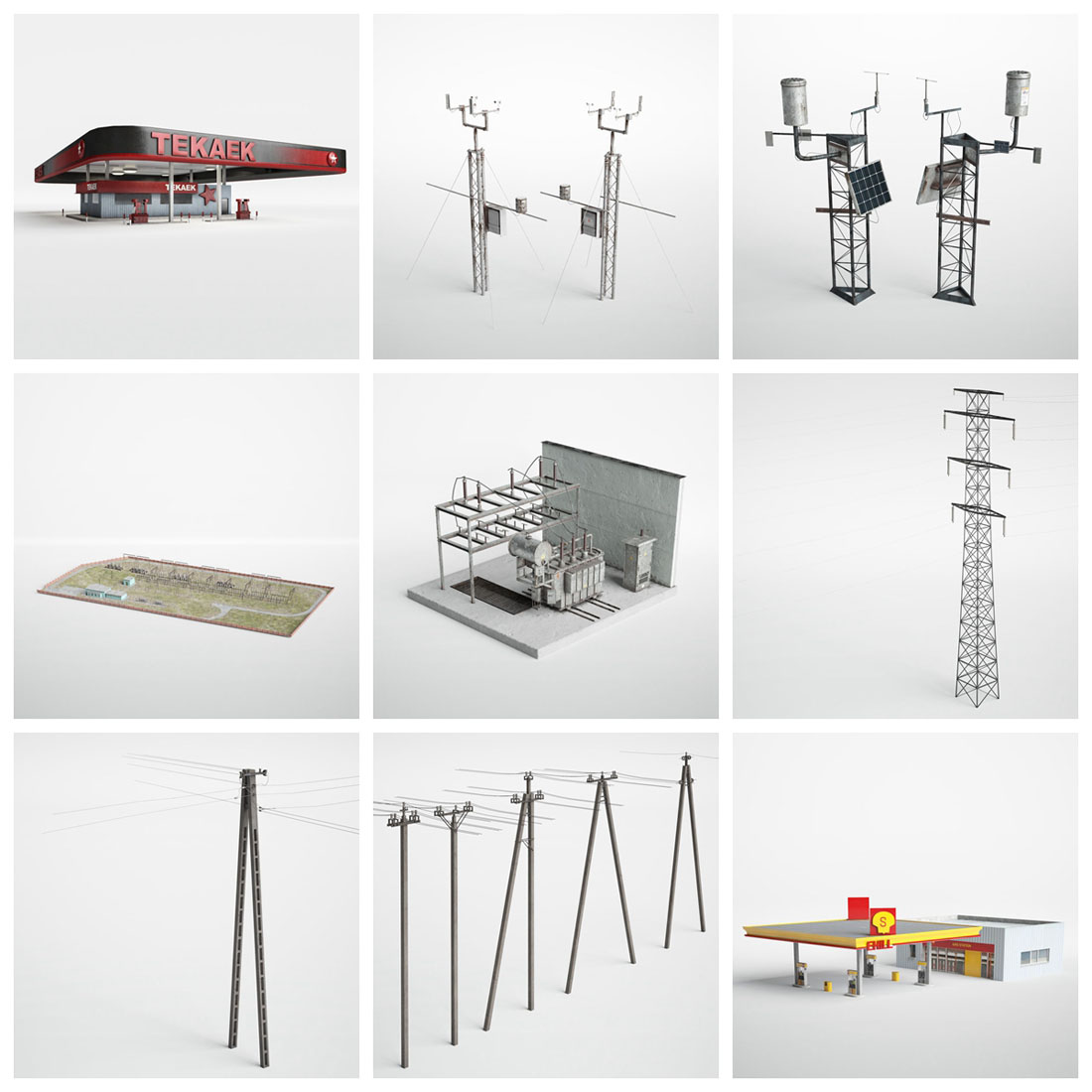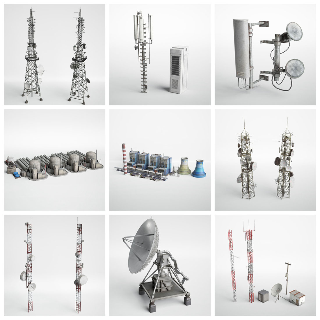 37款工业建筑道具天线、能源杆、发电站和加油站素材之家精选3D模型