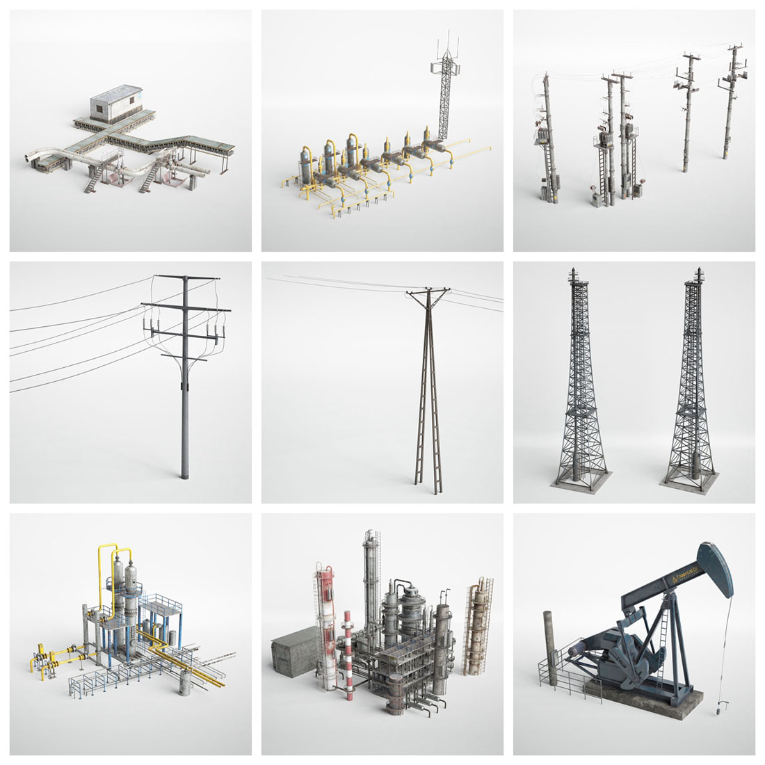 Archmodels 卷。 227 包括 37 个用于建筑可视化的专业、高质量 3d 模型。 该系列带有工业道具和建筑元素,如天线、能源杆、发电站和加油站模型。 所有对象都可以在您的可视化中使用。