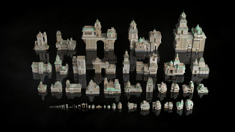 建造历史悠久的市政广场或建造最终的新古典幻想城市。这些宏伟的建筑借鉴了Palladian和Regency建筑的传统,使用了漂亮的山墙,拱门,柱子,威尼斯窗户,镀铜以及高大而复杂的塔楼。有多种石材,砖块,灰泥和木材纹理可供选择,您可以为您的世界增添罗马,联邦甚至超凡脱俗的天赋。