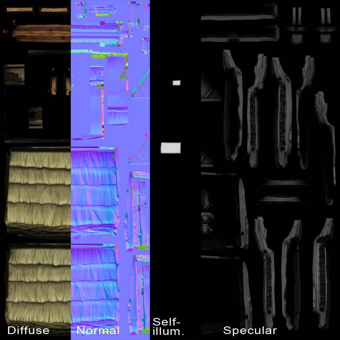 纹理是4096X4096 TGA,包括漫反射,镜面反射,法线和自发光贴图(用于夜间的窗灯)