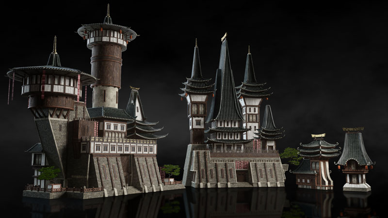 香格里拉东方神话中式建筑素材之家精选3D模型