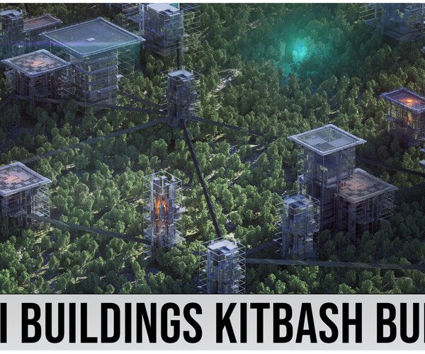 独特的模块化科幻赛博朋克未来城市建筑 Kitbash