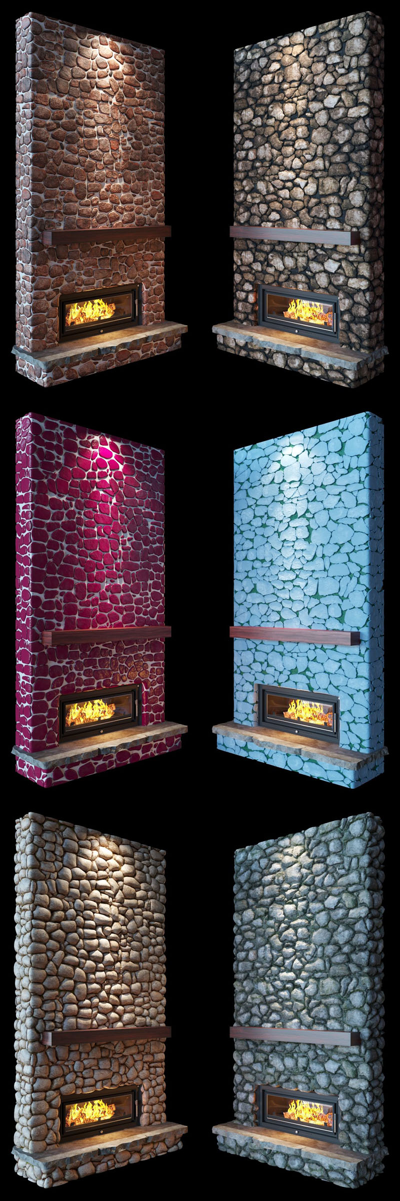 6个壁炉(2种石材),是混合置换纹理的不同方法