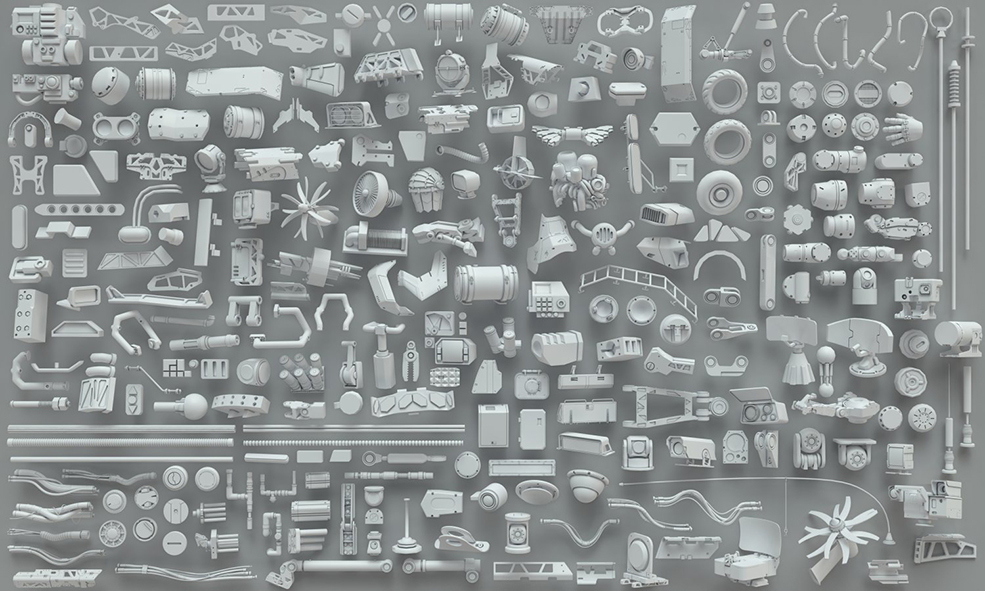 high and low poly kitbashes – 268 pieces,include fbx, stl and obj files, material and HDRI