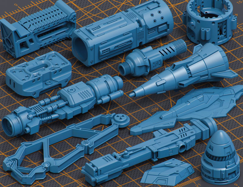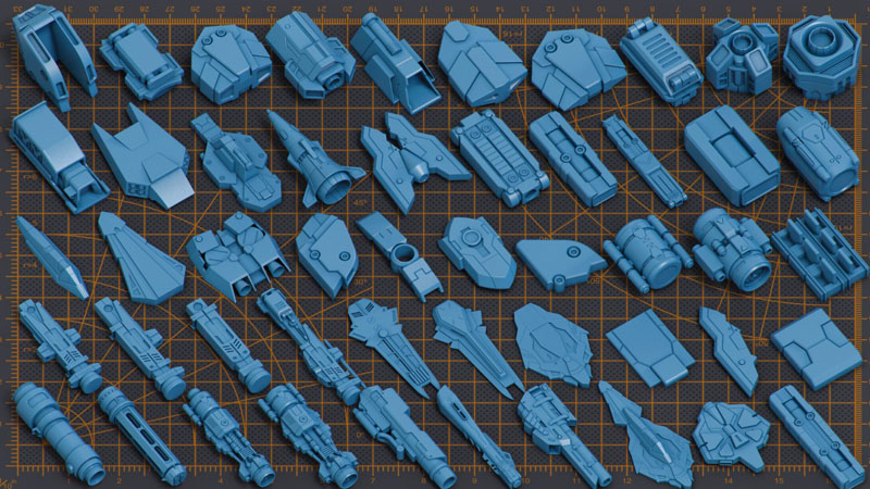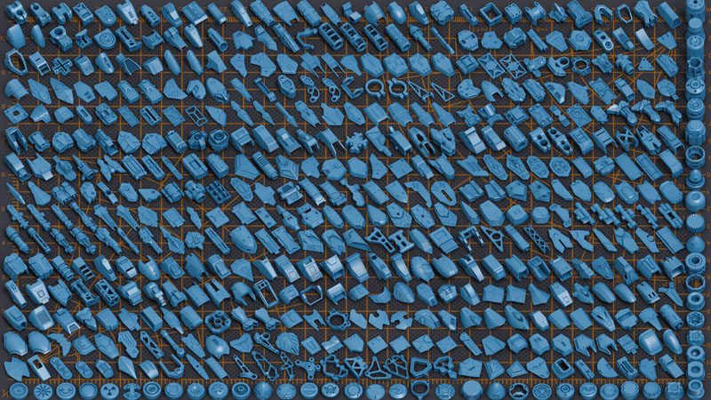 500组科幻硬面部件3D模型 Artstation – Mega Pack KITBASH 500 DETAILS。包含500个科幻机械硬面3D模型,MAX/FBX/OBJ格式