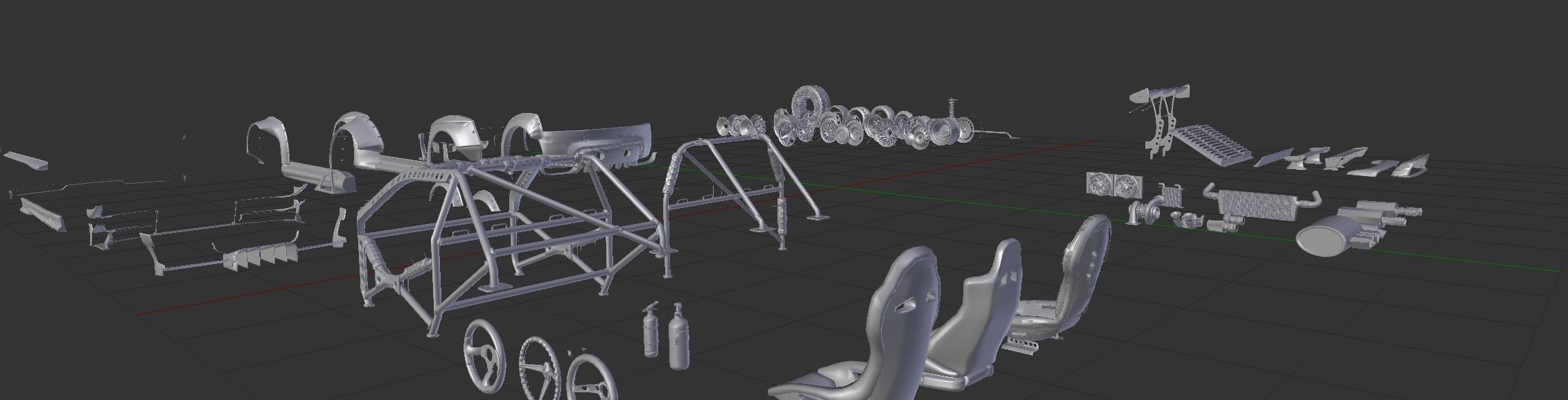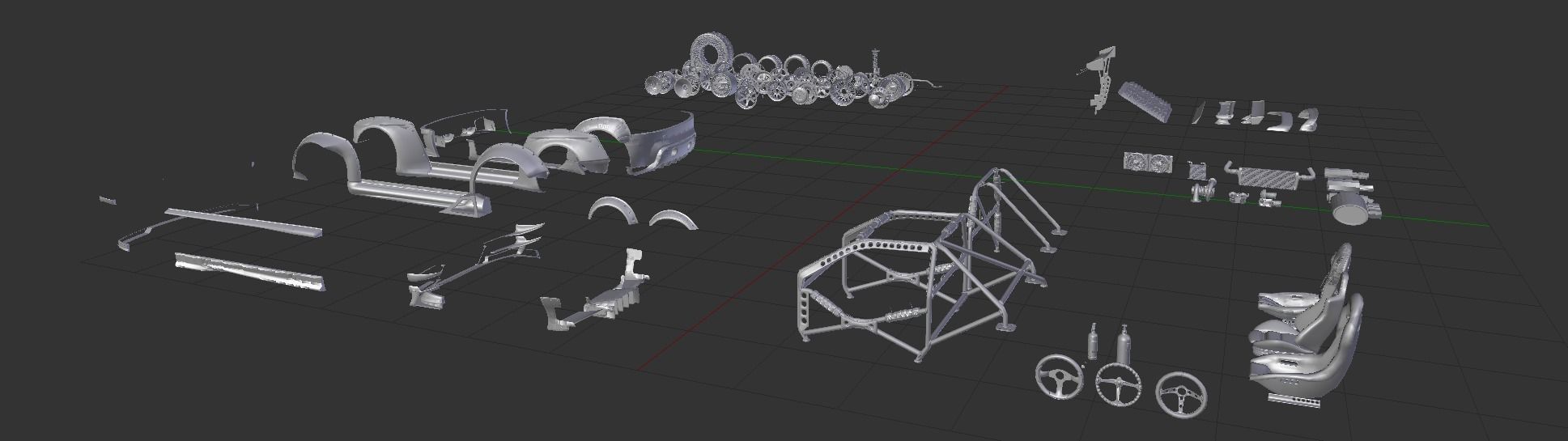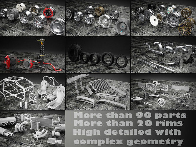 该套件包含许多不同的部件 - 从轮胎到轮辋、悬架、内饰和性能升级。我制作了多种风格,包括复古和科幻风格,因此您可以尝试将它们结合起来并从中获得乐趣,寻找您的汽车所需的视觉效果,让您的思绪狂奔。