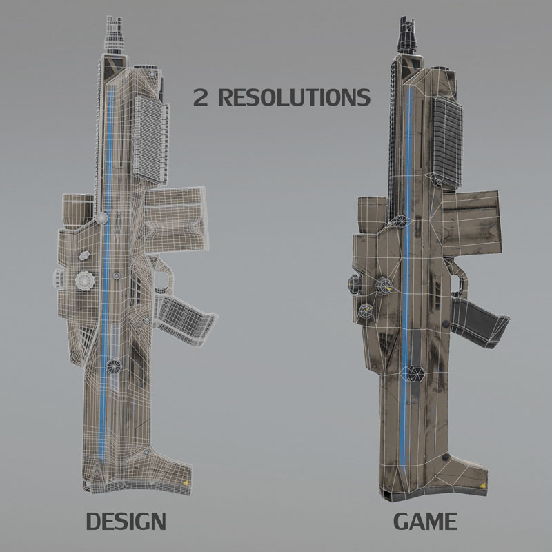 - 步枪作为单独的资产导入。