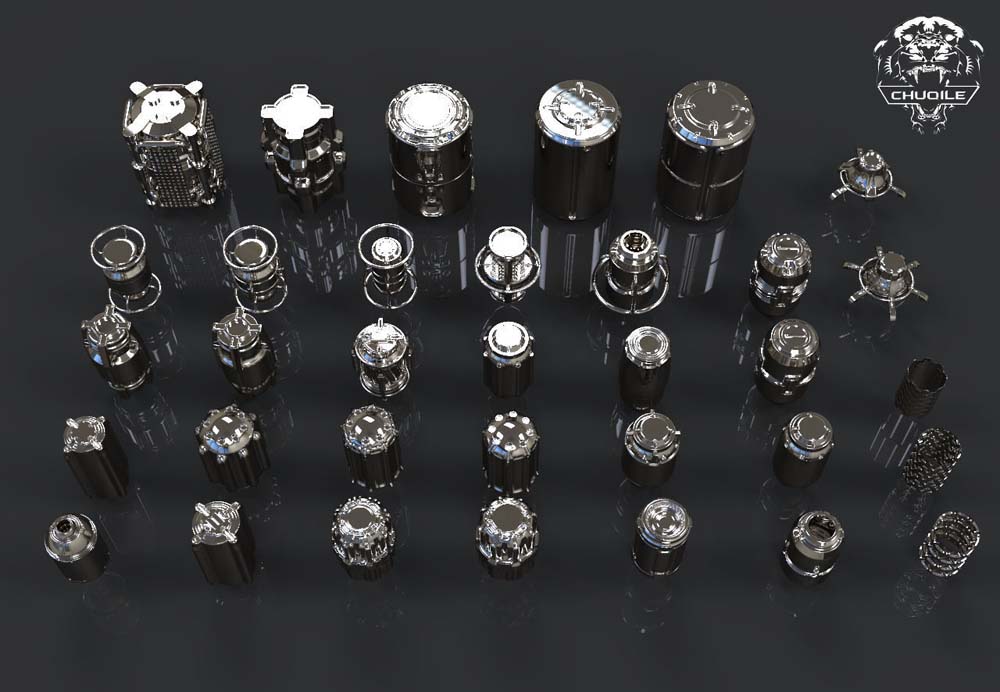 科幻硬表面kitbash圆筒VR/AR低多边形素材之家精选3D模型
