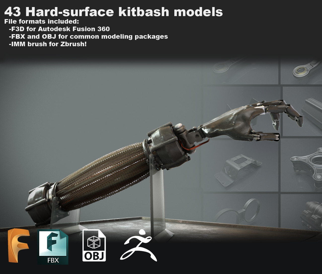 包括的文件格式:Fusion 360的F3D,Zbrush的IMM,FBX和OBJ(用于通用建模软件)