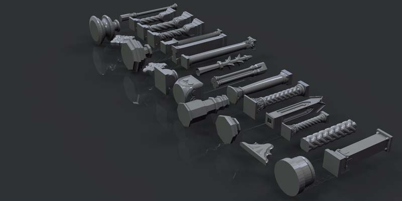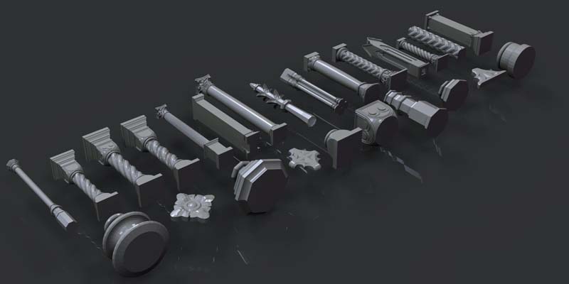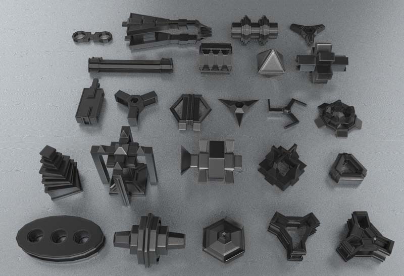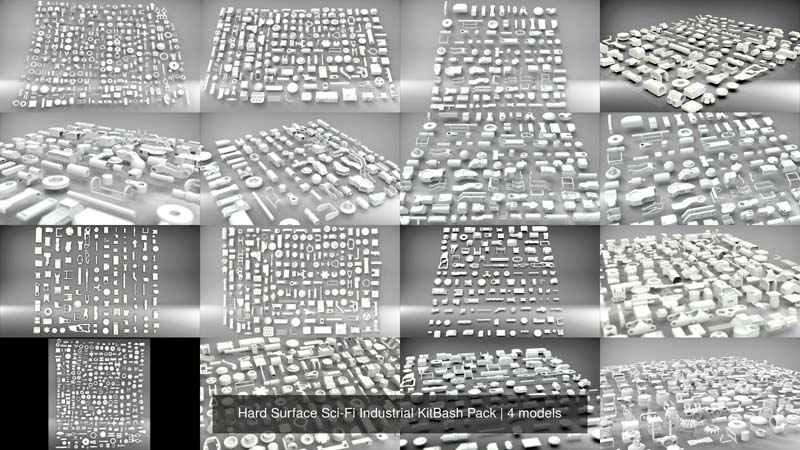 一共包含10个包,各种硬面模型零件模组,包含MAX | FBX | OBJ | STL | 3DS | Blend格式