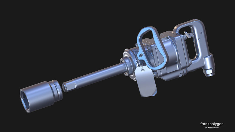 另一种气动工具,但这个工具有更多的特点和一些故事。 标准的高聚到低聚工艺。 在 Marmoset Toolbag 中烘焙的法线和 AO。 在 Quixel Suit 的帮助下,在 Adobe Photoshop 中创建的单个 4k 纹理。 Toolbag 中的所有渲染。