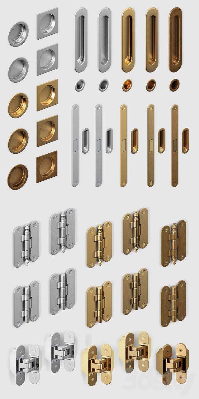 今天素材之家给大家分享的这款3D模型资源名称为:铰链和门把手等门配件3D模型,内容与门配件3D,铰链3D,门把手3D,3DMAX,3D模型,MAX,OBJ,FBX相关,文件大小为15.86 MB,模型文件格式为MAX OBJ FBX。